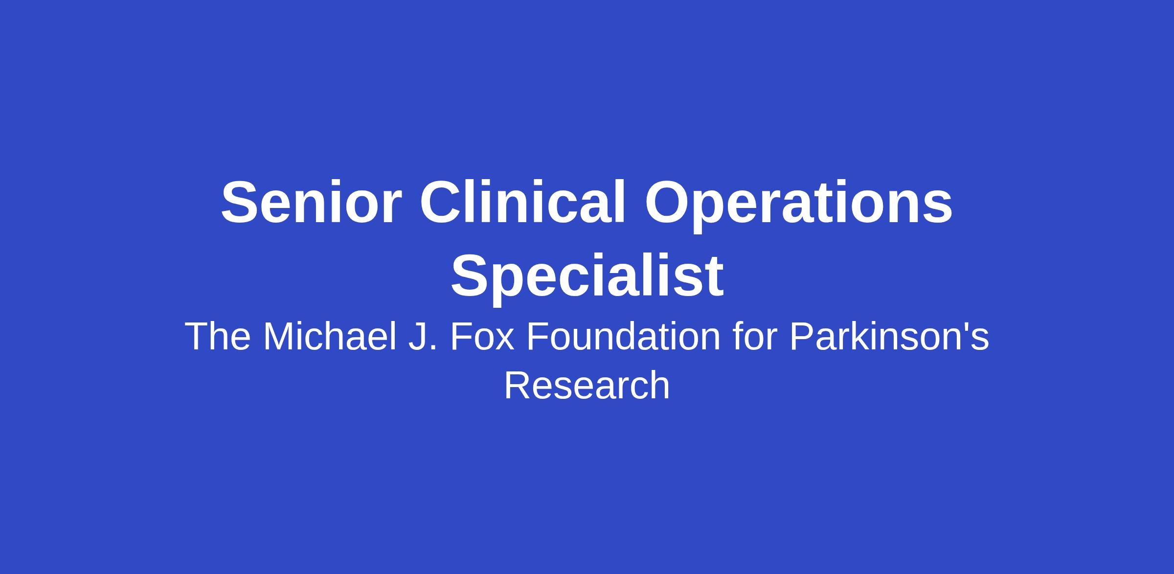 The Michael J. Fox Foundation for Parkinson's Research ("the Foundation") is seeking top talent for its Senior Clinical Operations Specialist position. This position will focus on oversight and coordination of projects within the Foundation’s coordinated clinical programs. Coordination of and investment in large-scale, multi-center clinical studies that study individuals across the disease spectrum and produce open access, field-enabling data and biological sample resources is critical to advancing the field’s understanding of Parkinson’s disease, thereby fostering the development of transformative Parkinson’s disease treatments.