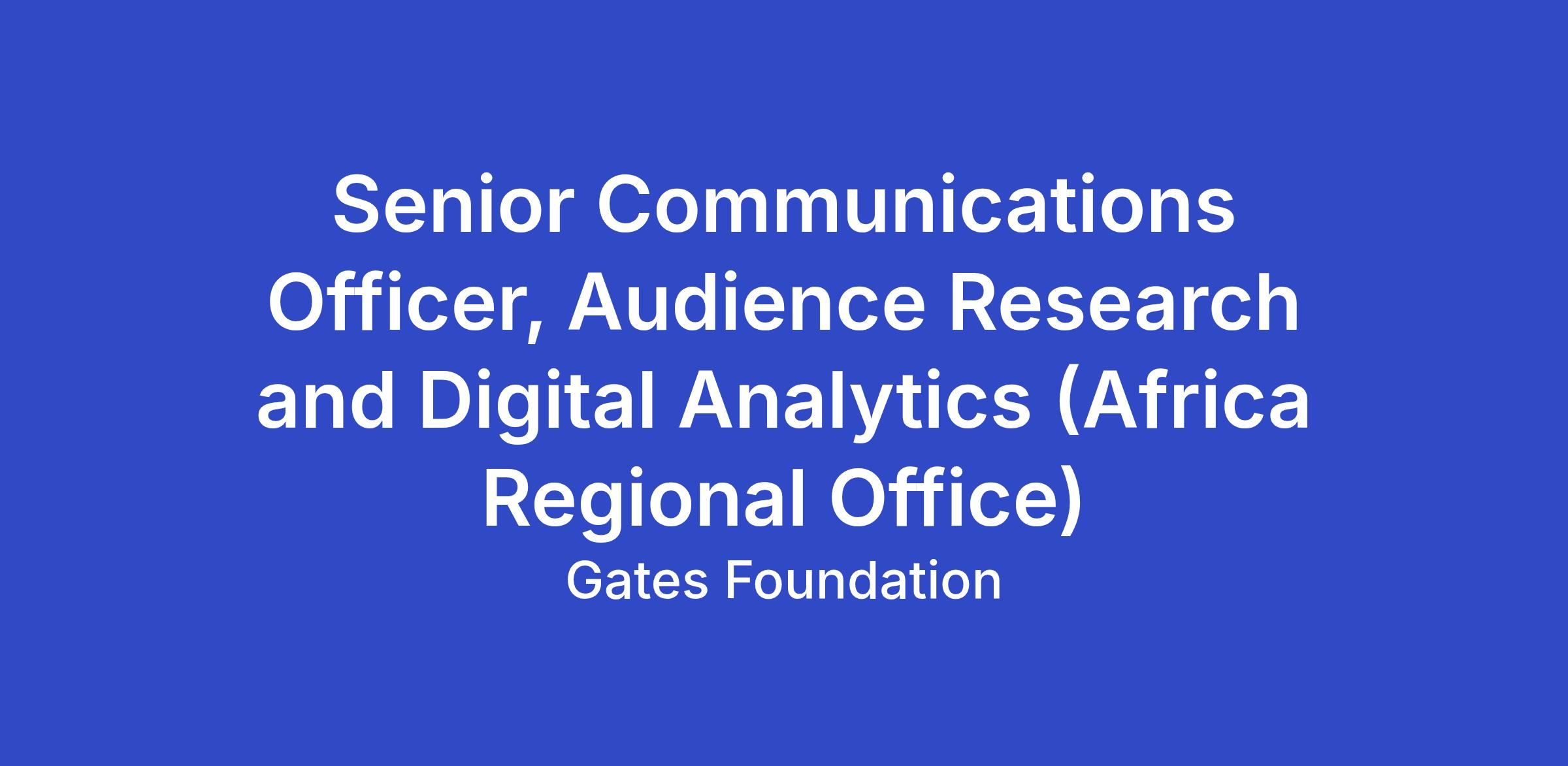Senior Communications Officer, Audience Research and Digital Analytics (Africa Regional Office)