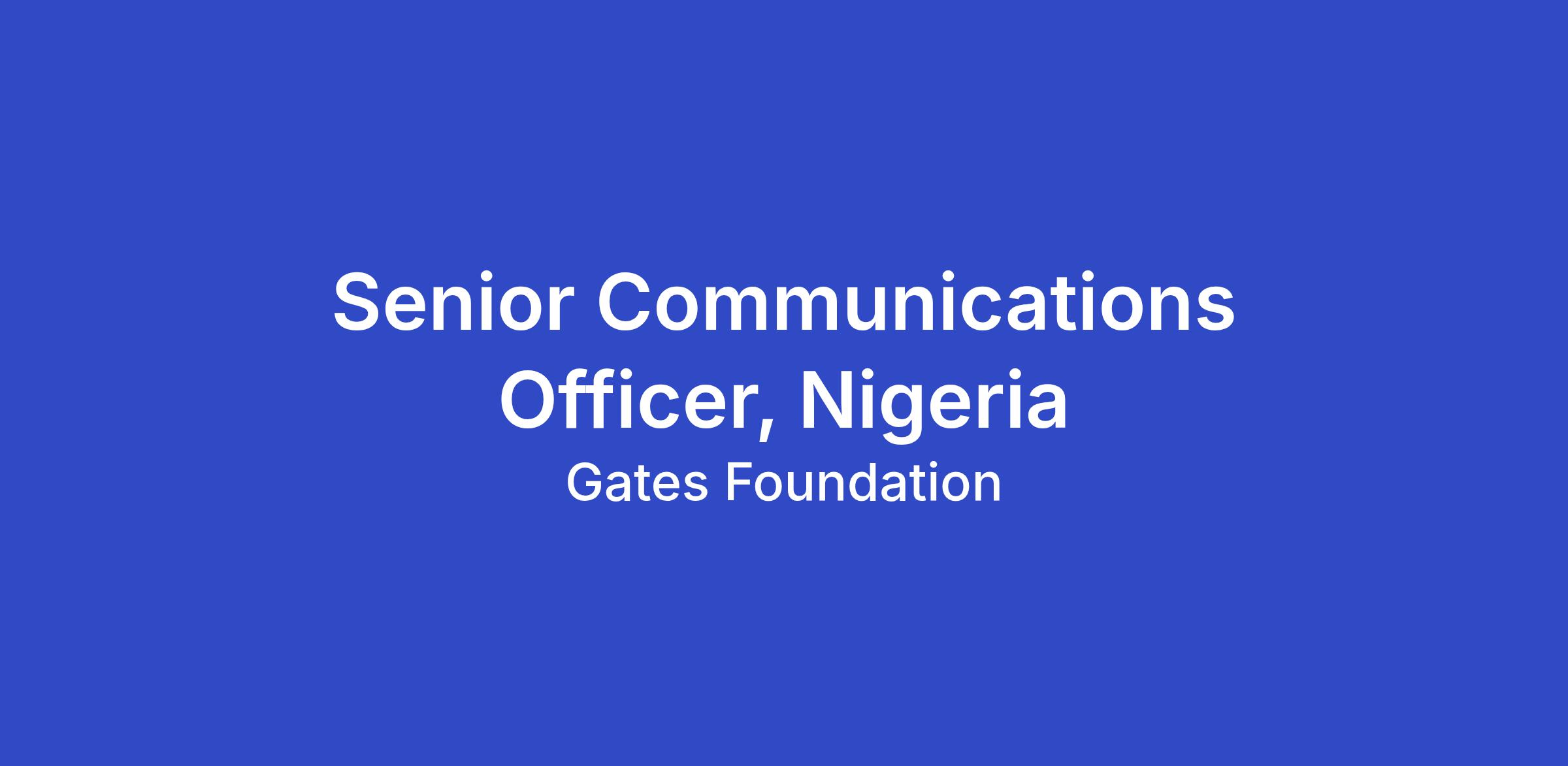 Senior Communications Officer, Nigeria