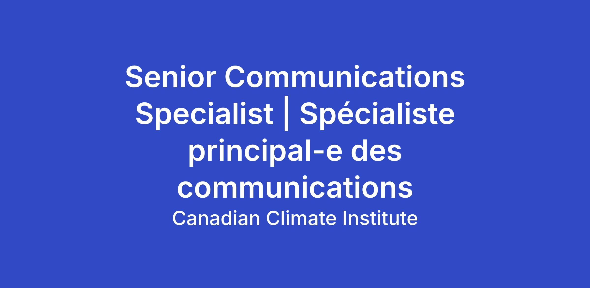 Sous l’autorité de la directrice adjointe ou du directeur adjoint des communications, la spécialiste principale ou le spécialiste principal des communications est responsable de la rédaction, de la révision et de la création de contenu numérique accrocheur pour l’Institut climatique (publications, articles de blogue, infolettres, site Web, médias sociaux). Ce poste est essentiel à la diffusion de nos travaux et de nos perspectives politiques de manière exacte, stratégique et accessible afin de sensibiliser les publics prioritaires aux solutions climatiques. Au moyen d’une revue des médias quotidienne ainsi que d’une analyse et d’une application continues de la recherche en communication stratégique, la personne retenue veillera à ce que le matériel de communication de l’Institut climatique soit aussi attrayant que pertinent, de sorte à consolider notre réputation comme source crédible et constructive d’expertise canadienne en stratégies climatiques.