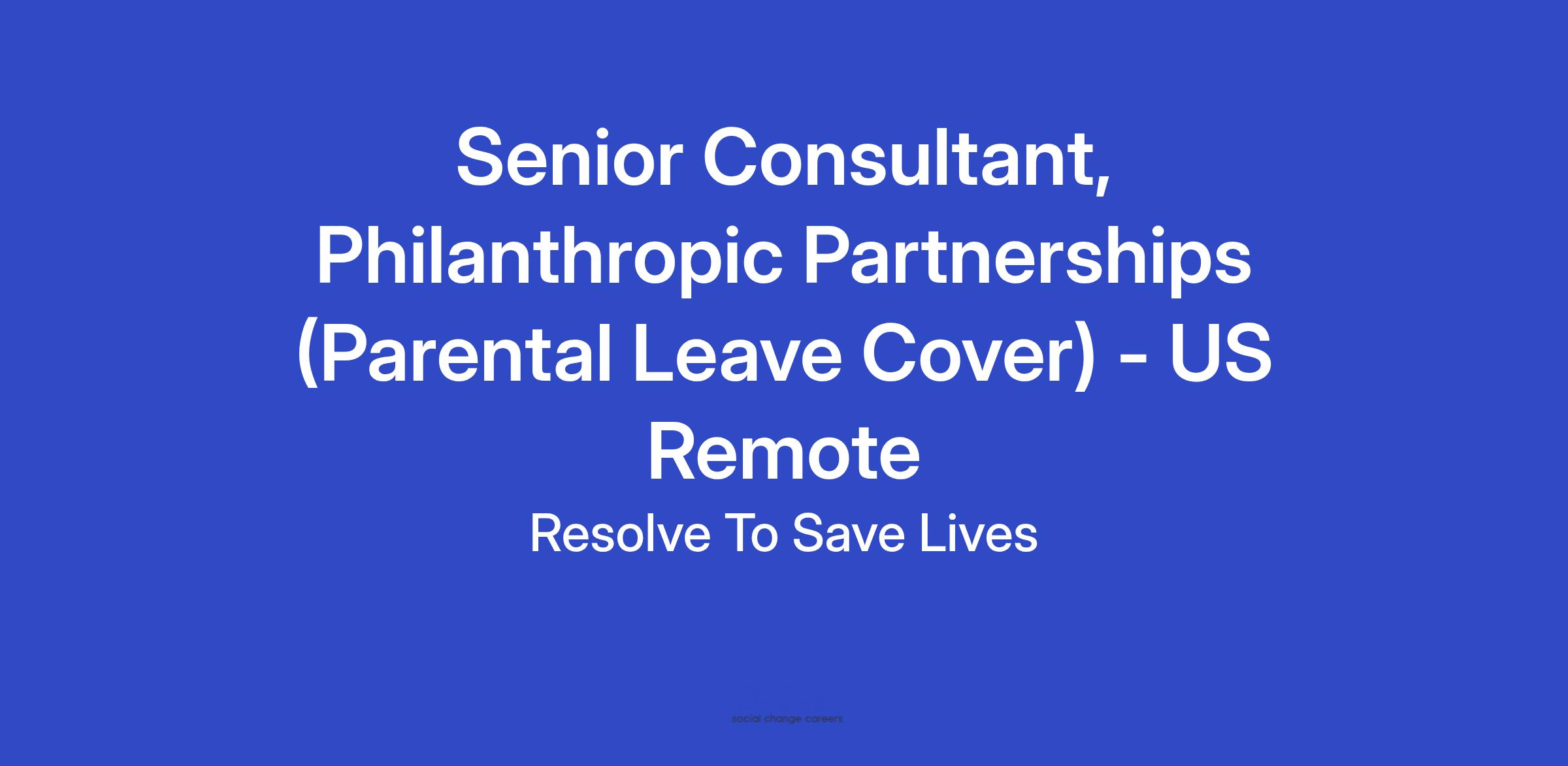 Position Title: Senior Consultant, Philanthropic Partnerships (Parental Leave Cover)