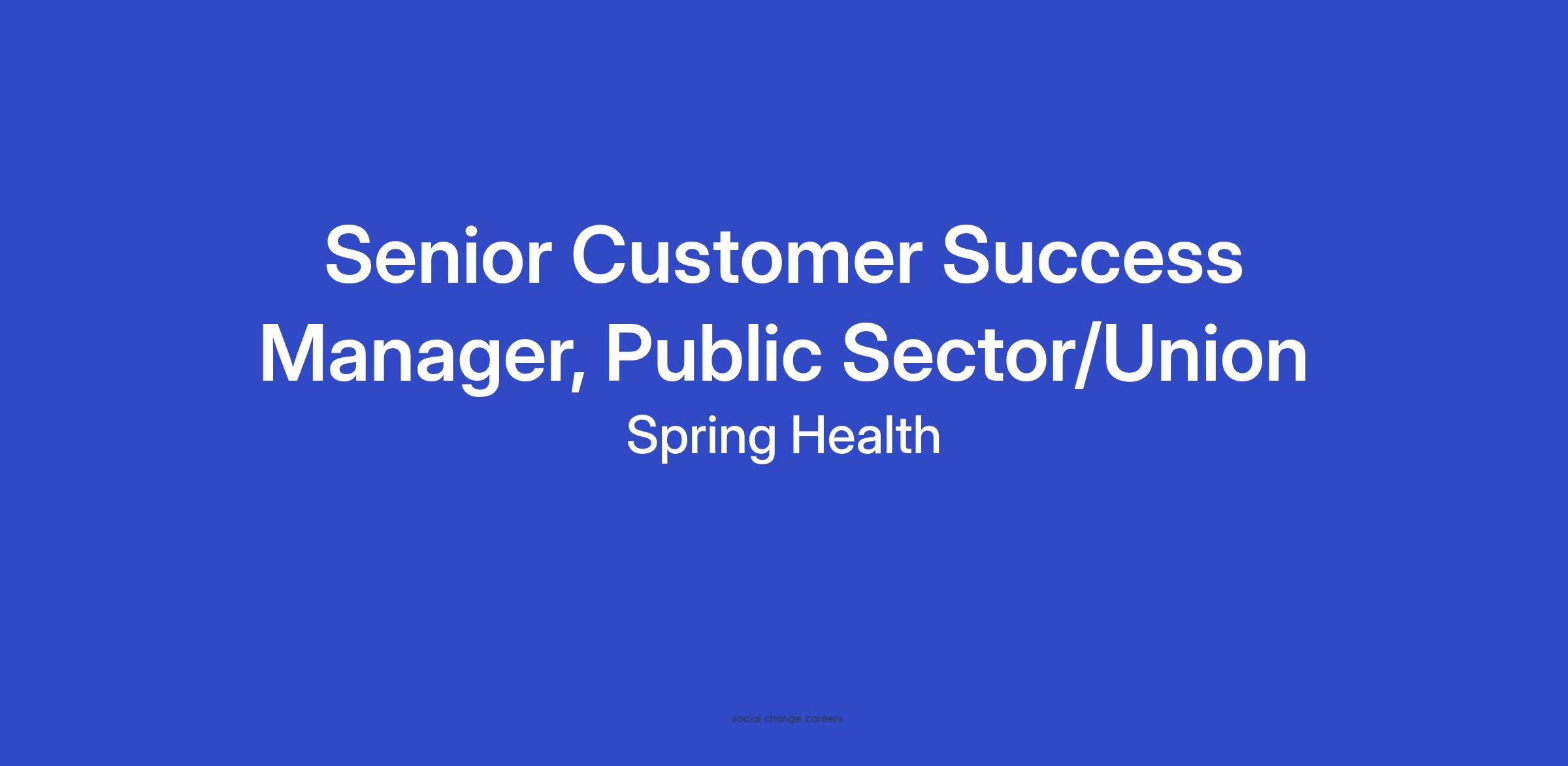 We are hiring a full time Senior Customer Success Manager, Public Sector/Union, reporting directly to the Senior Manager of Customer Success. In this role, you will be asked to take ownership of your book of business within the public and labor sectors, developing trusted relationships with key stakeholders, demonstrating program impact, and ensuring the success of Spring Health’s solution in highly regulated, compliance-driven, and complex environments.