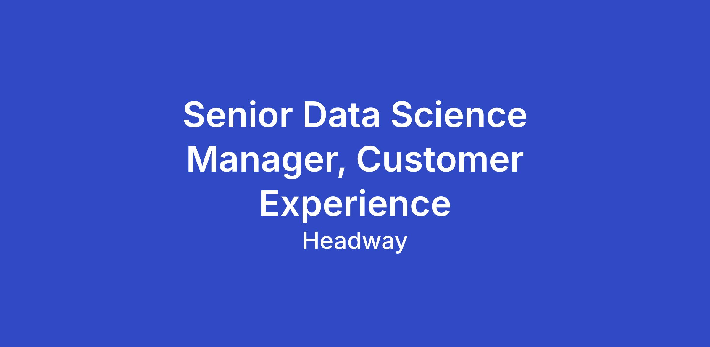 As Senior Data Science Manager for Customer Experience, you will define and lead the insights strategy for Headway’s customer experience ecosystem. The team’s mission is to deliver timely, meaningful support when it matters most through best-in-class tooling, automation, and AI.