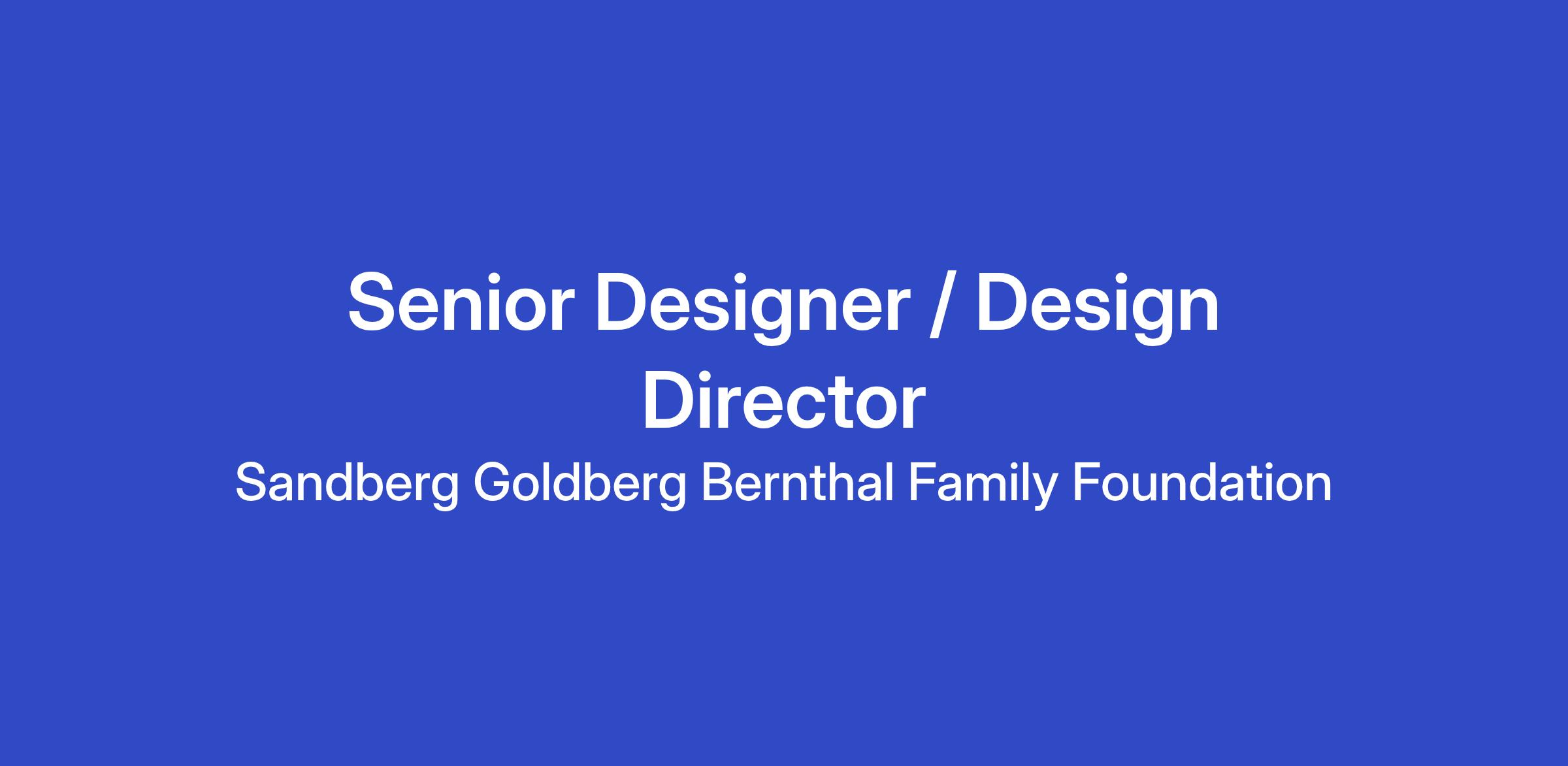 The Sandberg Goldberg Bernthal Family Foundation is committed to Equal Employment Opportunity without regard to age, race, ethnicity, gender, protected veteran status, disability, sexual orientation, gender identity, or religion. It’s important to us that people of all identities and backgrounds see themselves represented and included in our work, so we actively encourage people of all identities and experiences to apply.