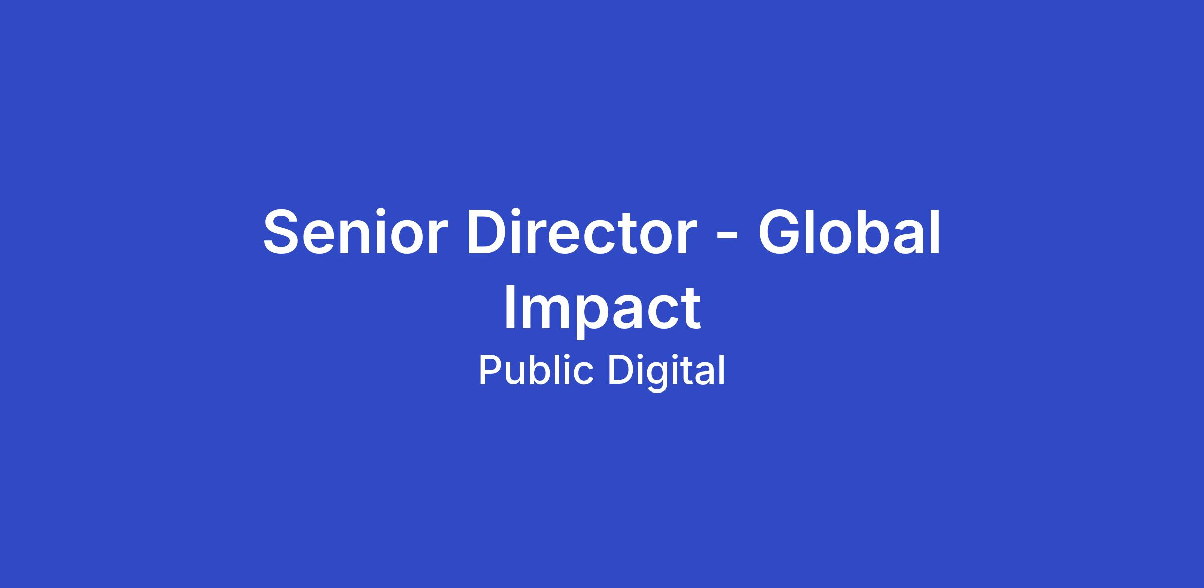 As Senior Director, Global Impact, you will play a leading role in delivering and growing Public Digital’s work with global institutions.