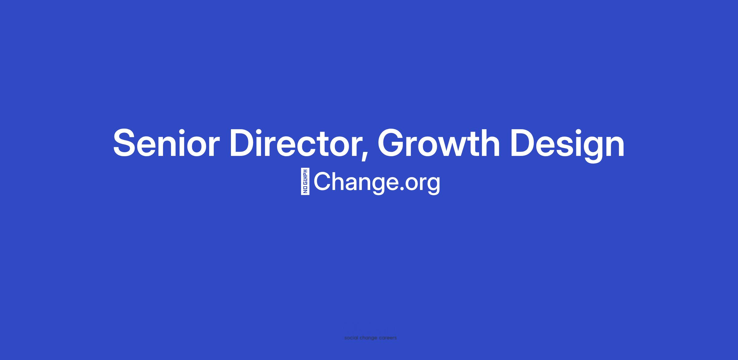 Change.org is searching for a Senior Director of Growth Design to lead our growth design team, building a variety of bets to increase our learning as a company and grow our impact to hundreds of millions of users across the world.