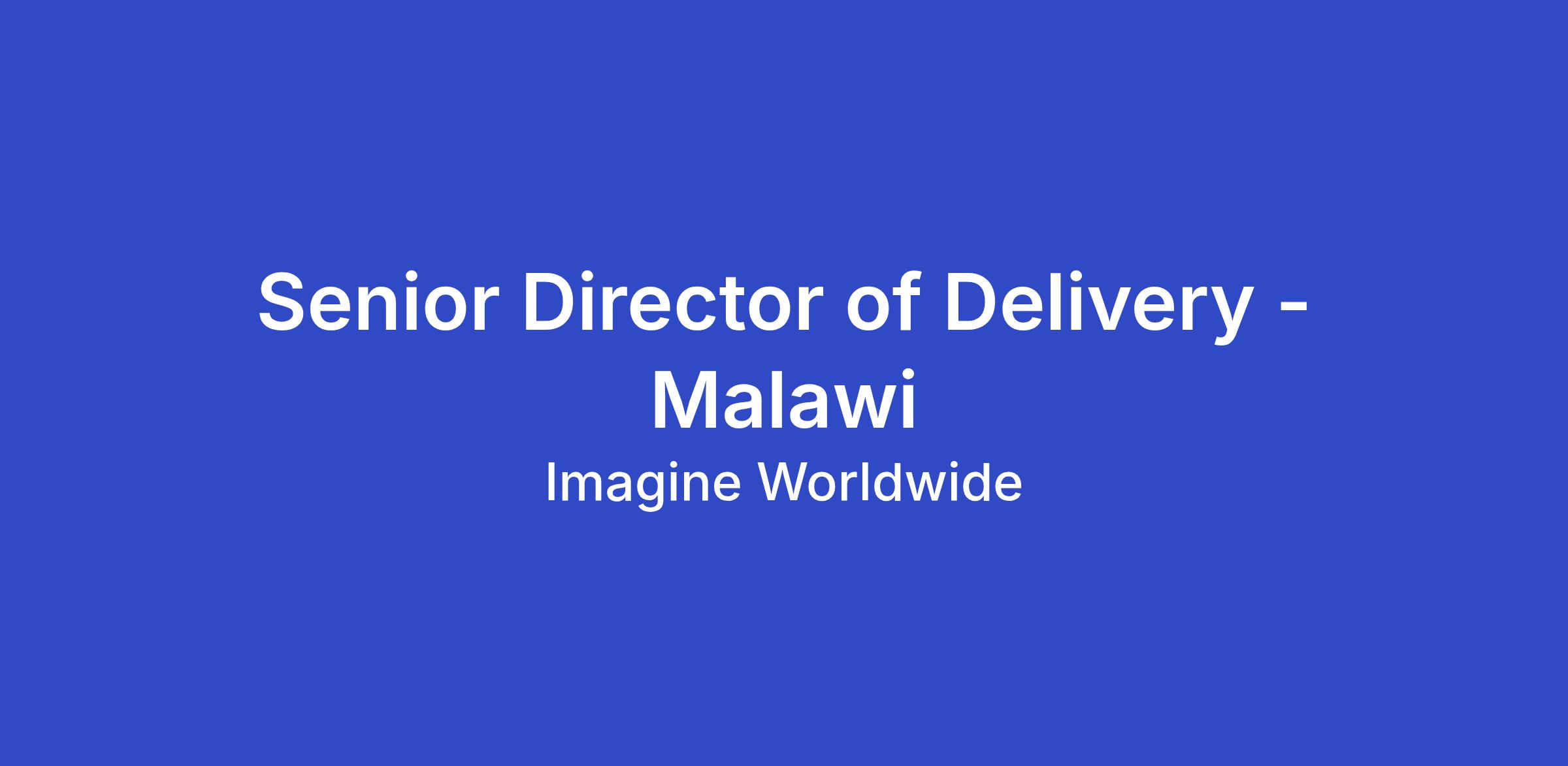 The Senior Director of Delivery must be based in Malawi