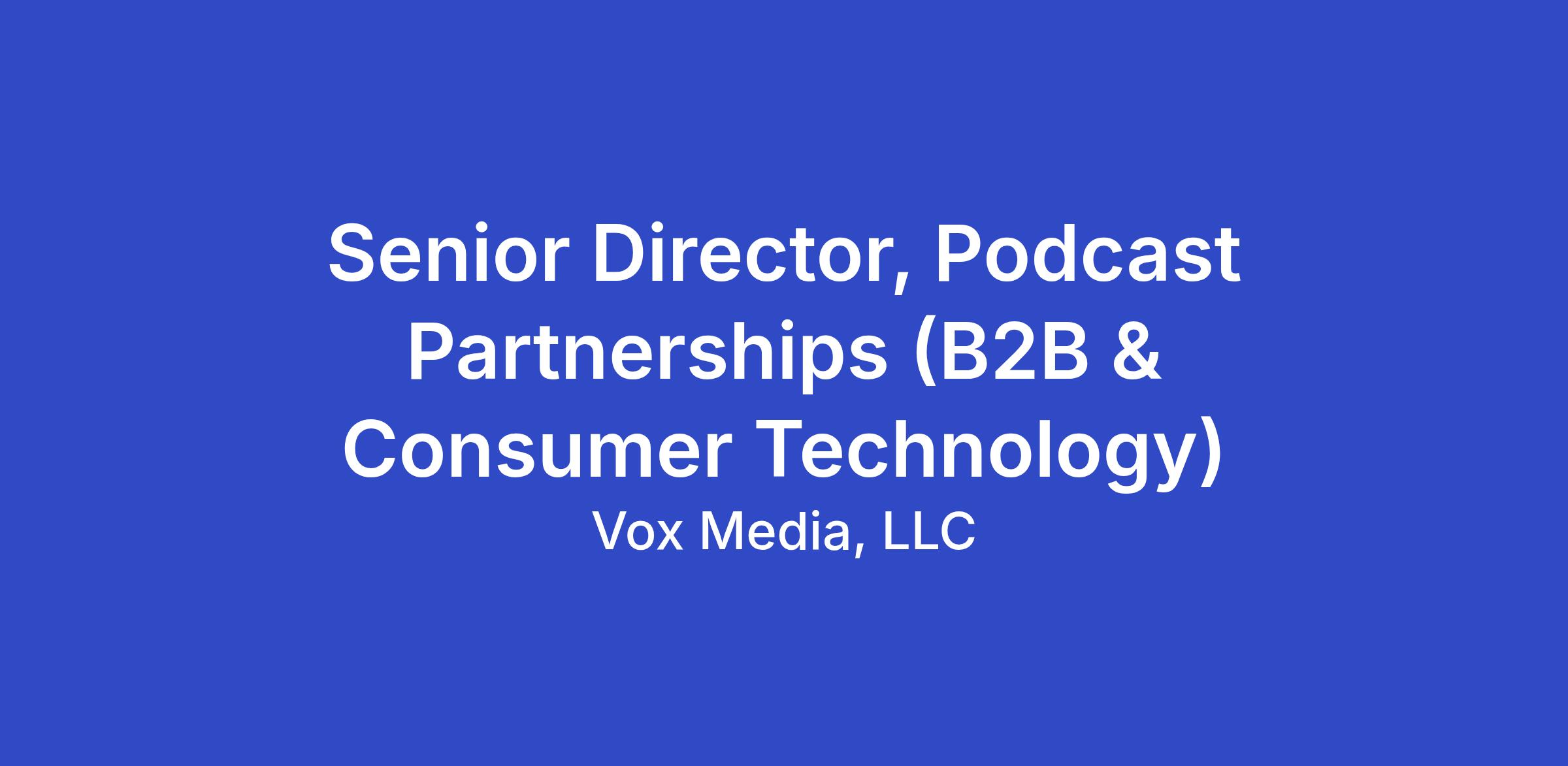 In this role, you are not just selling media — you are shaping how B2B and Consumer Technology brands connect with audiences through premium audio and video content, trusted voices, and unique scale. As a Senior Director of Podcast Partnerships, your ability to see around corners, anticipate client needs, and deliver category-defining ideas will directly influence Vox Media's position as a leading force in the podcast and talent space!