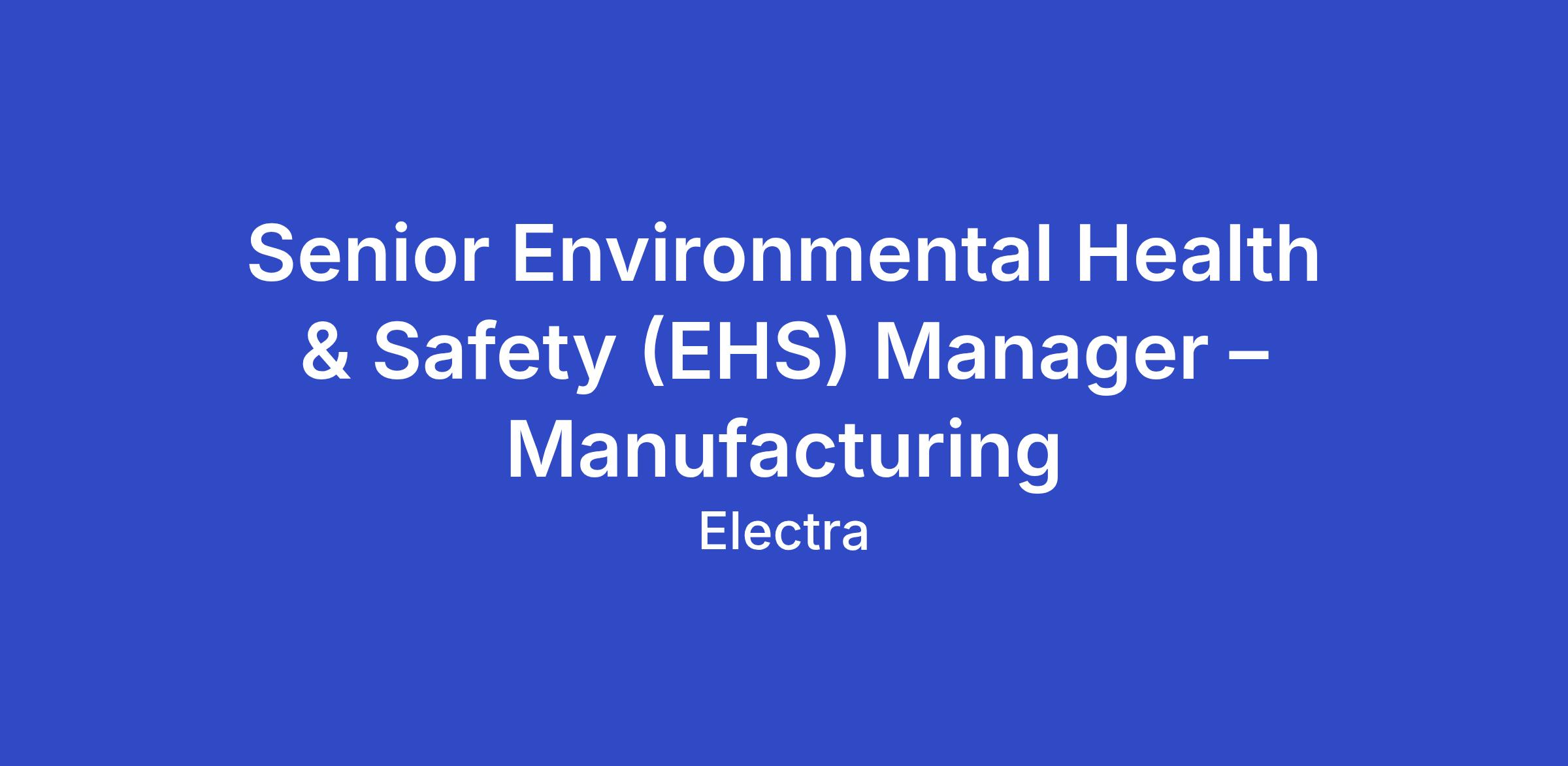 The Senior Environmental Health & Safety (EHS) Manager will have primary responsibility for the Broomfield site operation’s EHS scope and duties and secondary responsibility for Electra corporate EHS program development. In such capacity, this person will lead the environmental, health, and safety programs at our Broomfield, Colorado manufacturing facility. This individual will play a critical role in assisting with developing safety systems from the ground up, ensuring compliance, and fostering a strong safety culture in a heavy industrial environment.