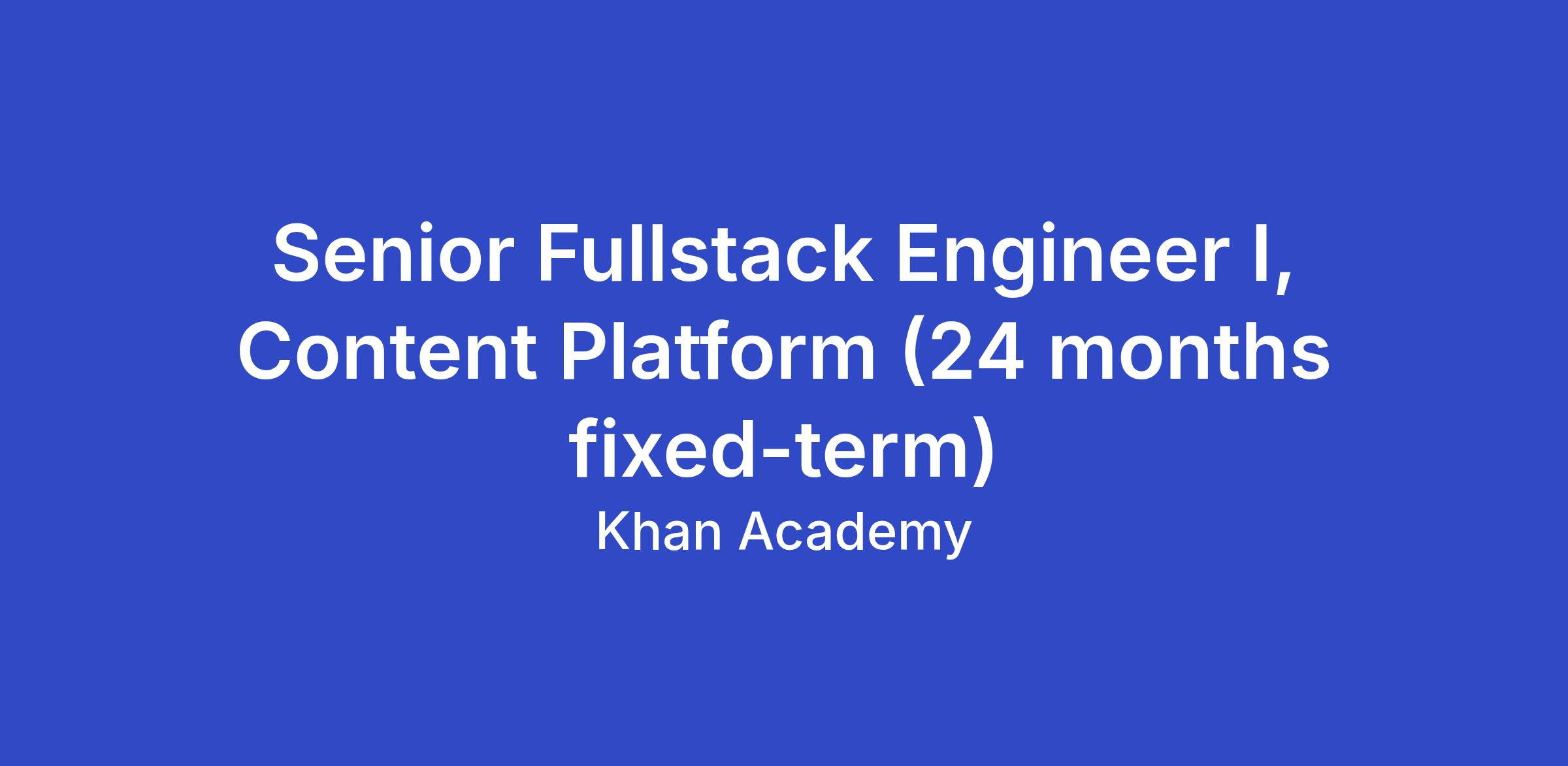 Senior Fullstack Engineer I, Content Platform (24 months fixed-term)