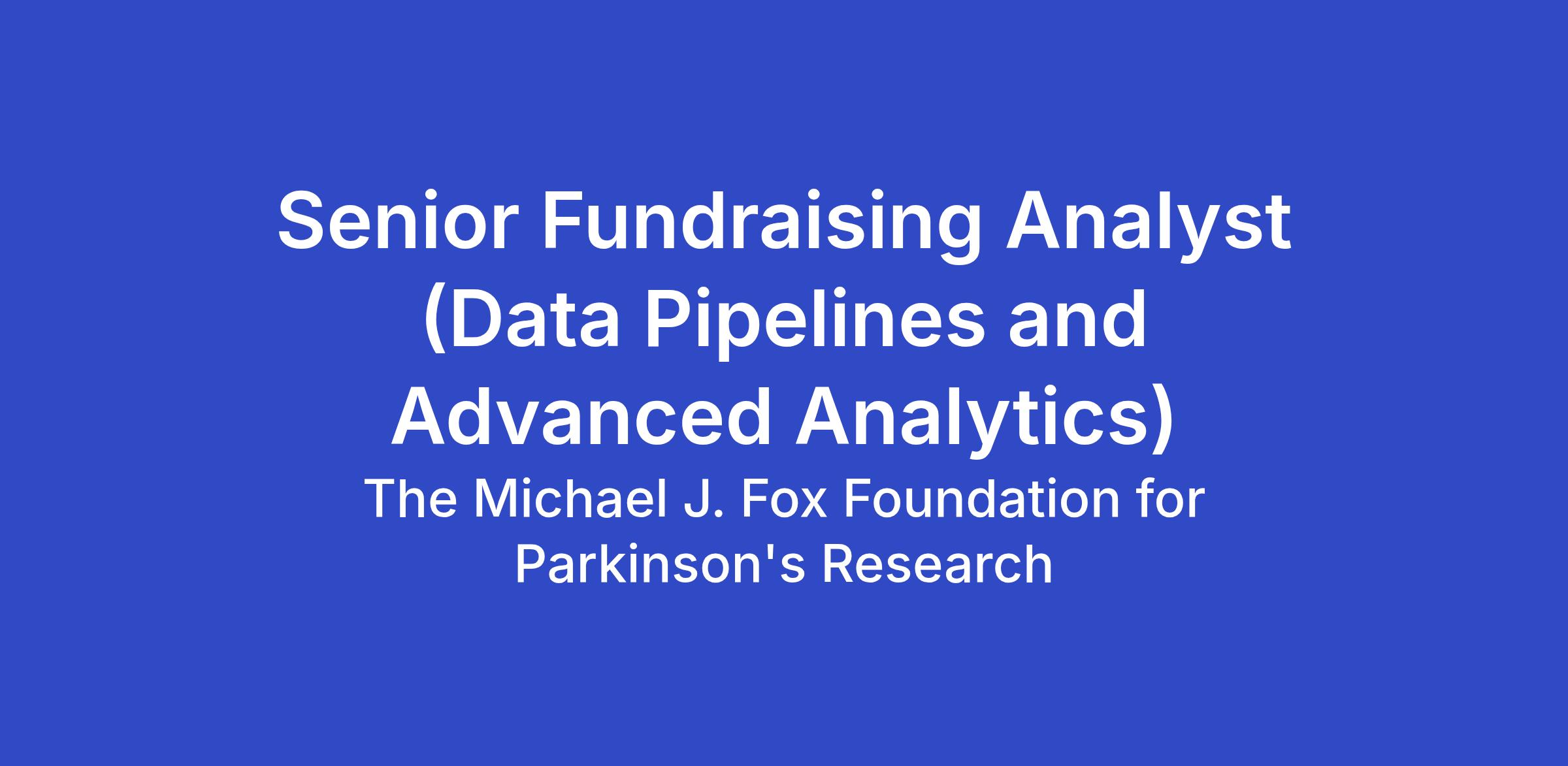 Job Title: Senior Fundraising Analyst (Data Pipelines and Advanced Analytics)