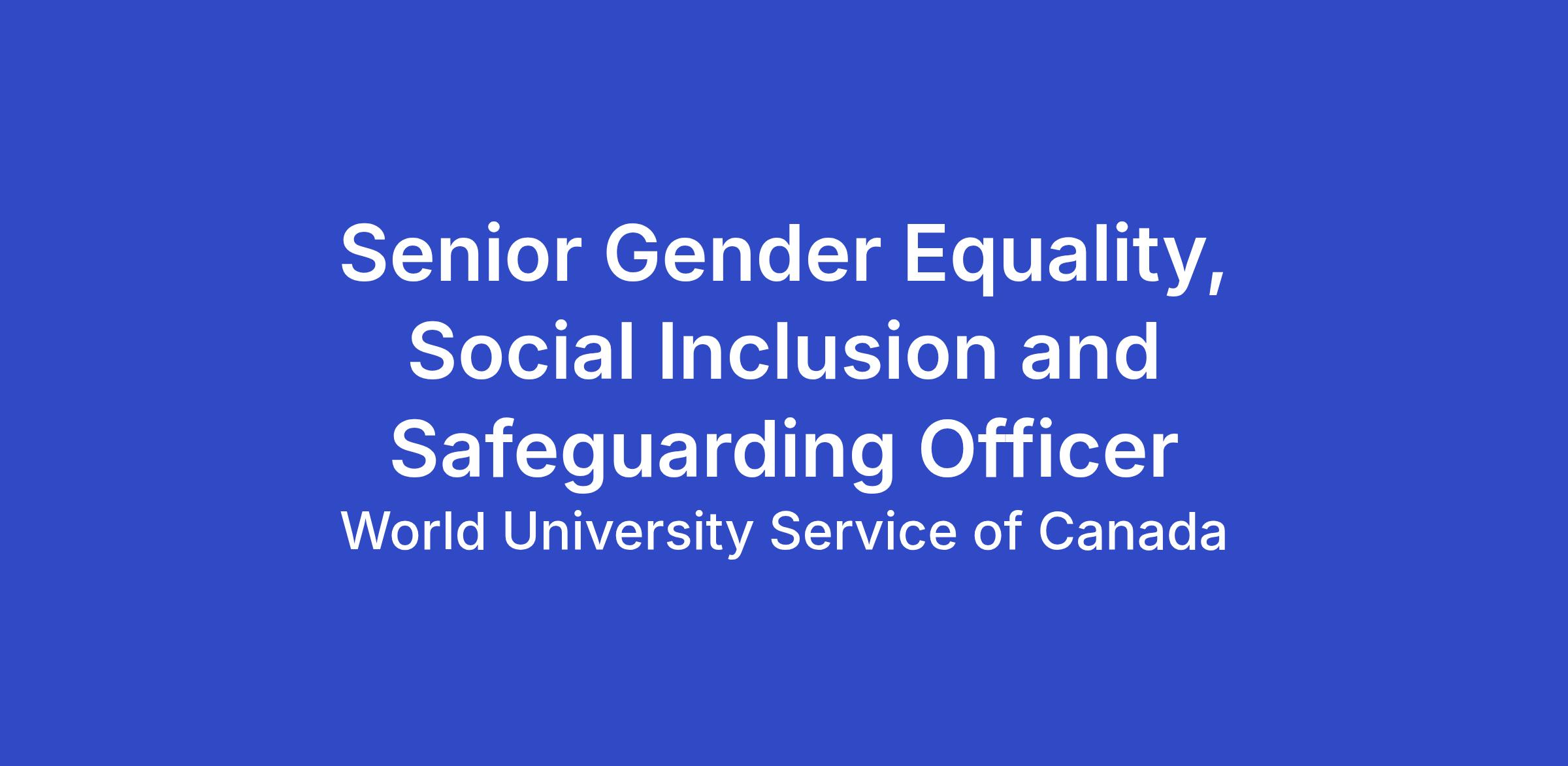 Senior Gender Equality, Social Inclusion and Safeguarding Officer