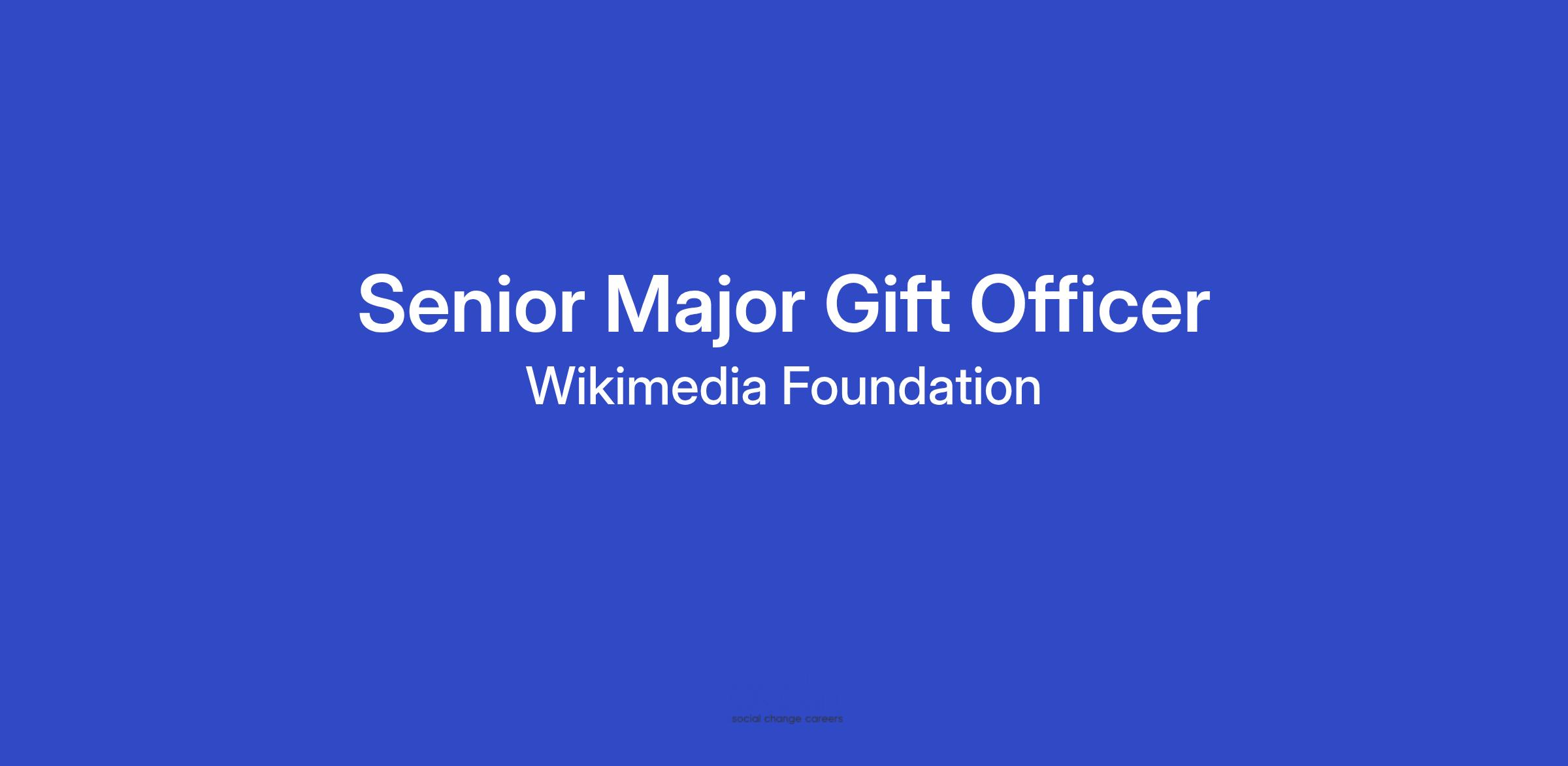 The Senior Major Gift Officer is a critical part of the Wikimedia Foundation’s fundraising team, focused on raising major gifts and planned gifts for the Wikimedia Foundation and Wikimedia Endowment.