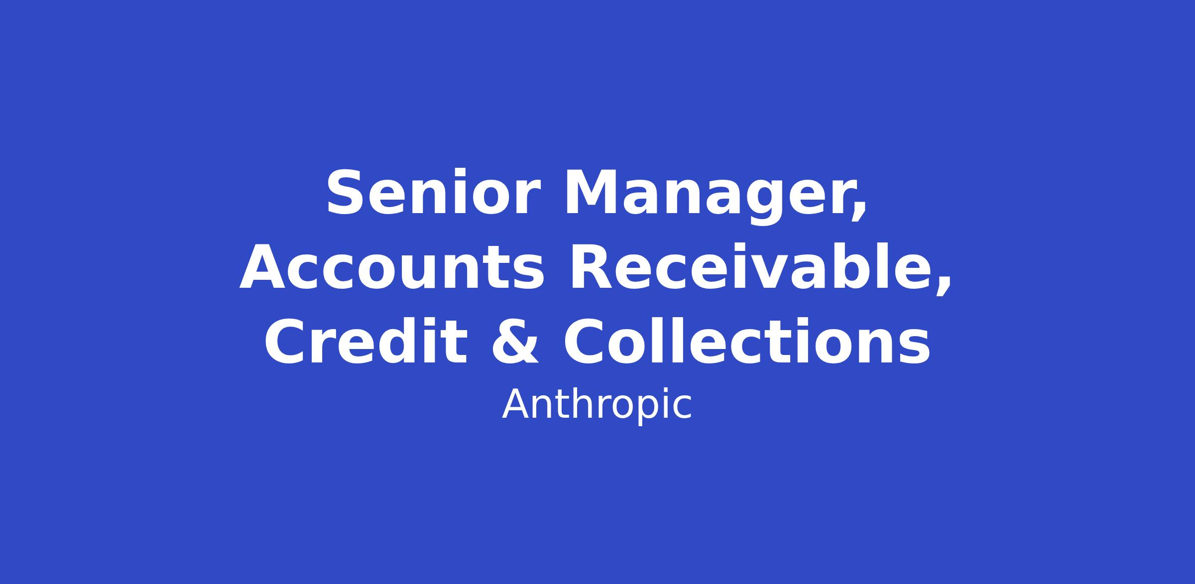 This is a senior people leadership role with meaningful strategic scope and a strong automation mandate. Anthropic expects its finance function to operate at the frontier of what AI and modern tooling make possible, and credit and collections is a natural place to lead from the front. You will manage a team of managers and analysts, set the credit and collections strategy for the region, and own the automation roadmap that lets us scale cash collection without linearly scaling headcount. You will partner closely with Sales, Legal, Deal Desk, and Customer Success leadership, and help shape the processes, policies, and systems that allow us to extend credit responsibly and collect efficiently at enterprise scale. You will report into the Accounts Receivable Lead and work alongside regional counterparts in EMEA and APAC to drive consistency in how we manage customer credit risk globally.