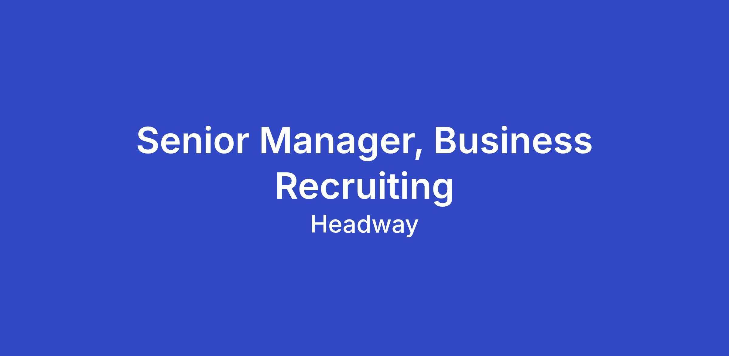 Headway is hiring a Senior Manager, Business Recruiting to lead our Go-To-Market (Sales, Marketing, RevOps) and G&A recruiting teams. This is a highly visible leadership role responsible for evolving Business Recruiting to meet the growing hiring needs through strategic, data-driven hiring at scale.