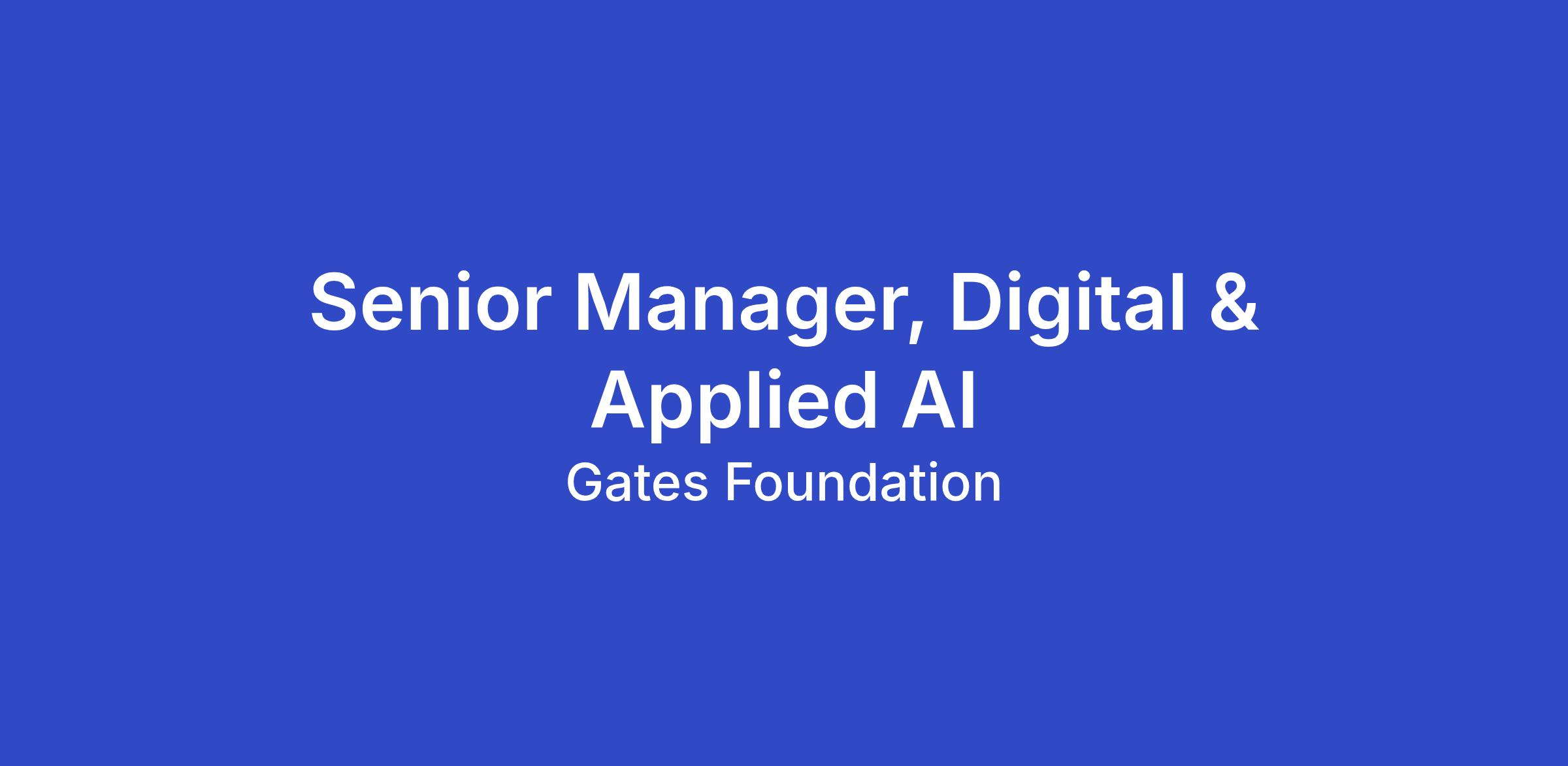Senior Manager, Digital & Applied AI