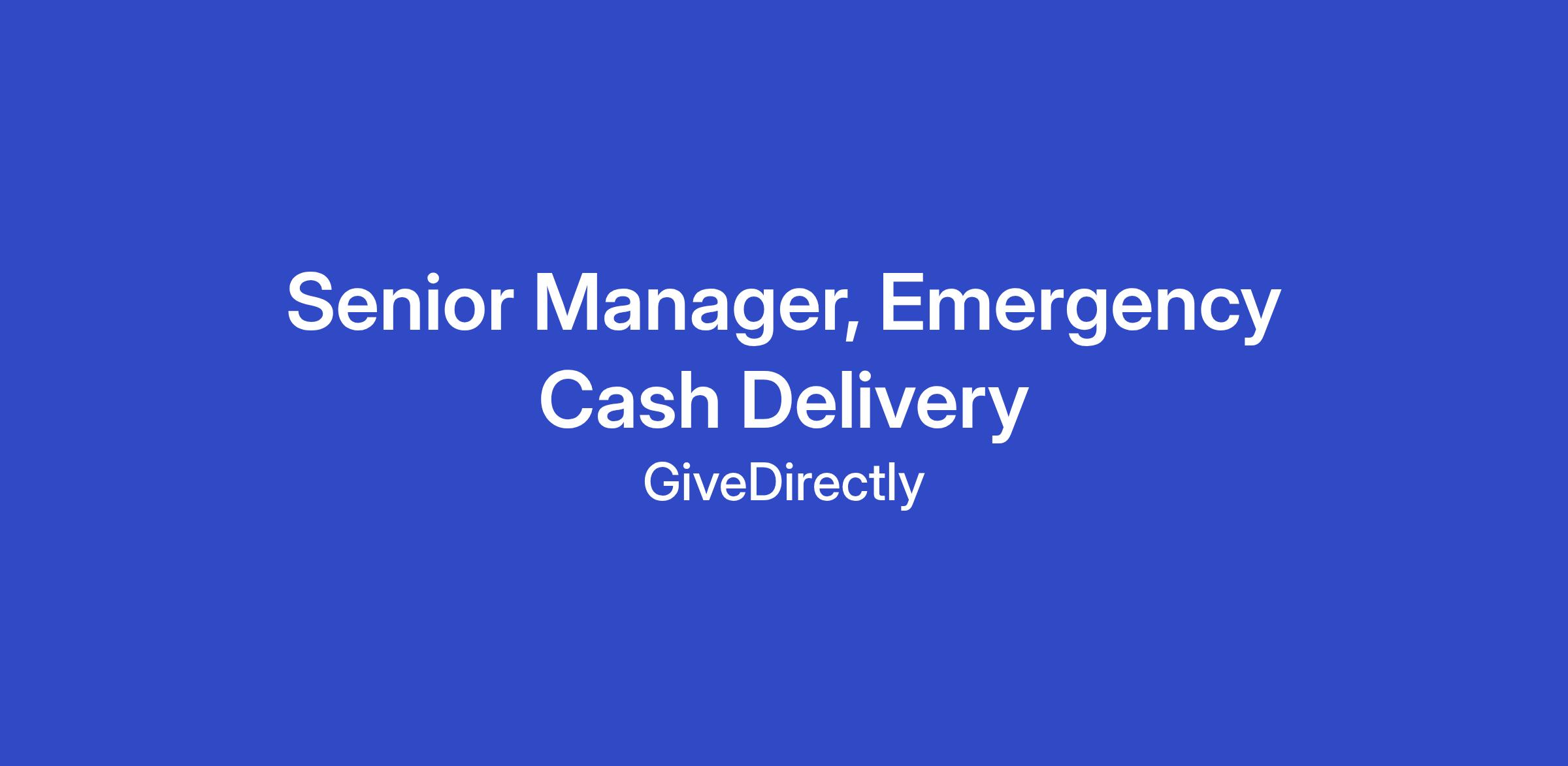 GiveDirectly is scaling its emergency response operations to reach more people, faster, with cash in the wake of crises. As a Senior Manager on the Humanitarian team, you will play a key role in launching and overseeing rapid cash responses globally. You’ll drive organizational readiness, design response strategies, manage program implementation, and support fundraising by translating field insights into compelling cases for support. The Senior Manager’s portfolio will be staffed with a Program Manager, to be managed by the Senior Manager. Other responsibilities will include support to staffing and budgeting exercise, and managing internal and external relationships.