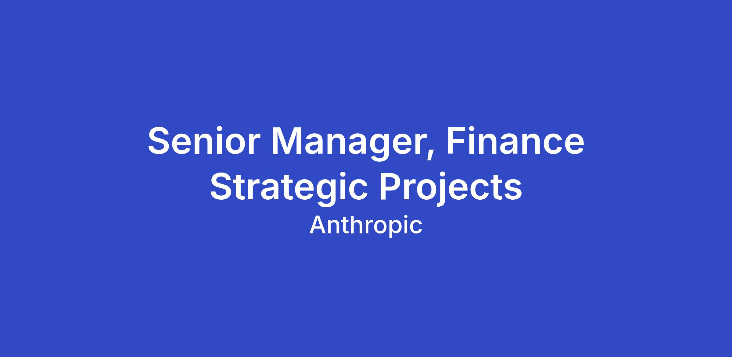 The Senior Manager, Finance Strategic Projects role is responsible for designing, implementing, and optimizing operational processes that drive efficiency and scalability across the Finance organization. Finance has meaningfully integrated Claude into its workflows, and this role will help sustain and expand that — championing new ways to deepen Claude's use across the team. You'll identify process improvements and automation opportunities, establish systems for tracking and optimizing resource utilization, manage cross-functional workflows and vendor relationships, and build operational frameworks that enable teams to maintain high standards while scaling rapidly in a fast-paced, high-growth environment.