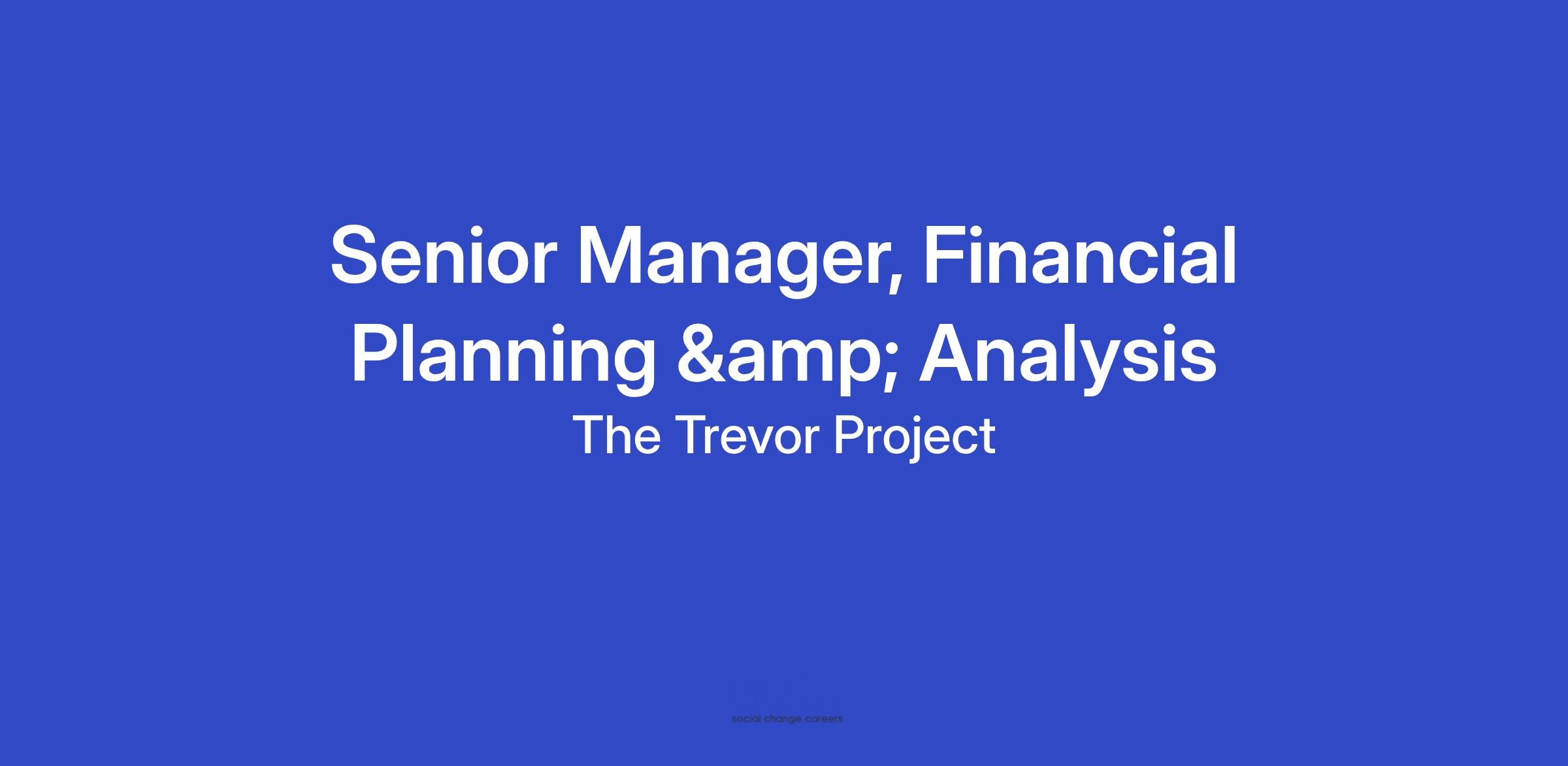 The Senior Manager of Financial Planning & Analysis (FP&A) plays a pivotal role in driving data-informed decision-making across the organization. In partnership with the Senior Director, CFO, and department leaders, this role ensures that Trevor’s financial plans are sustainable, equitable, and strategically aligned with our long-term mission. The Senior Manager will also oversee state reporting processes and compliance, ensuring Trevor’s continued operational excellence and accountability as well as preparing budgets, forecasts, and financial analysis.