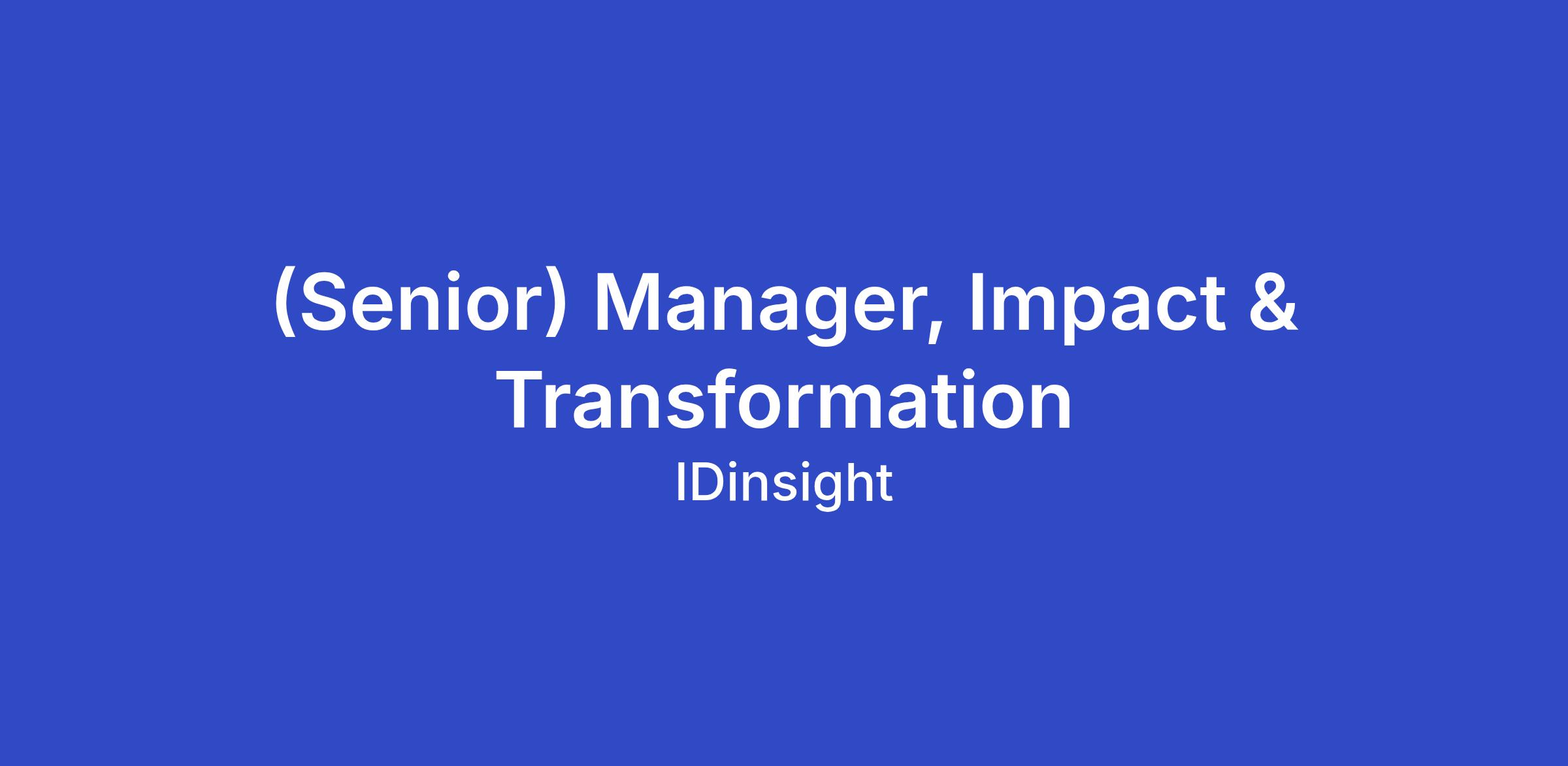 We are hiring a Manager to drive forward our internal learning workstream, where we generate, analyze, and integrate data to improve internal decision-making and learning, similar to the work IDinsight does with our clients, but focused internally.