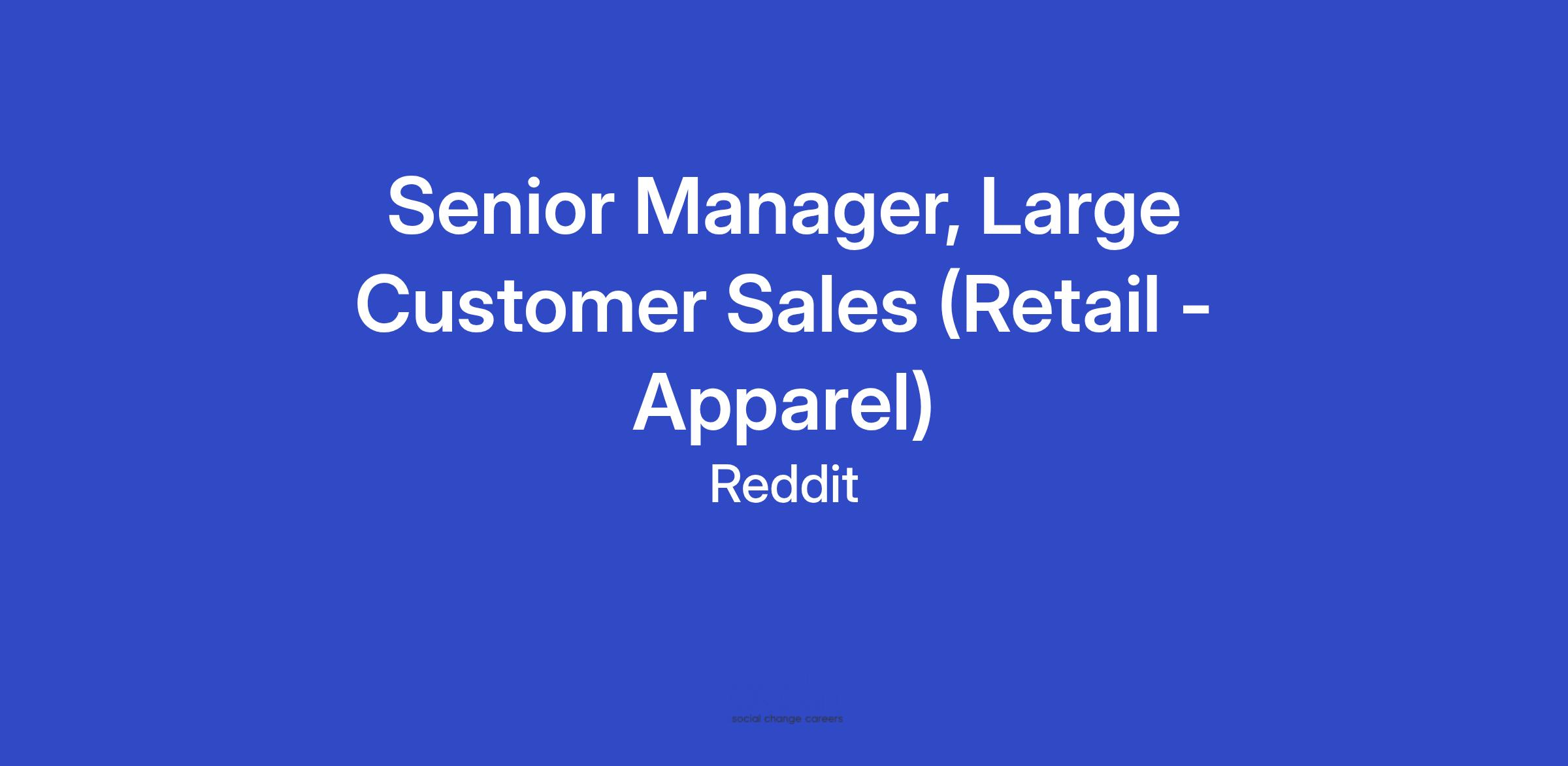 We are looking for a strategic leader to join our Large Customer Sales (LCS) Retail vertical to accelerate our growth in the Fashion and Sports Apparel category. This unique role focused on leading a team of sellers and establishing Reddit as a must-buy partner within this key market segment.