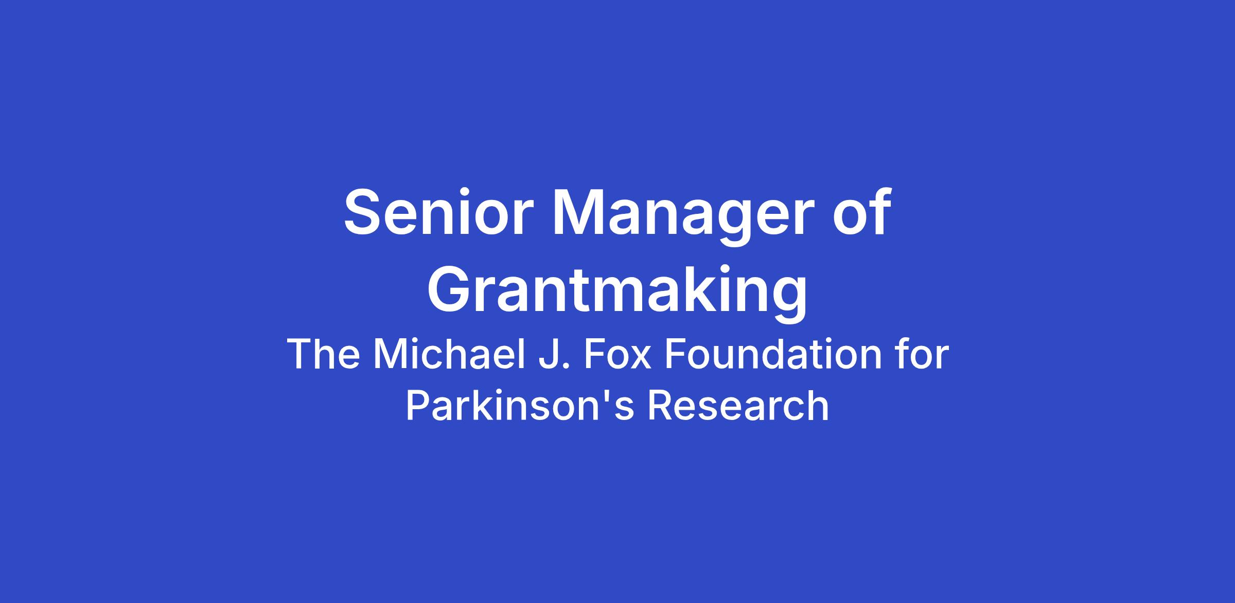 The Michael J. Fox Foundation for Parkinson's Research ("the Foundation") is seeking top talent for its Senior Manager of Grantmaking position. This position is focused on supporting the Grant Operations function within the Research Operations department. The department occupies a uniquely interconnected position within the organization, partnering with programmatic teams and collaborating across departments to facilitate grantmaking, grants administration, and program operations management in support of the Foundation’s mission.