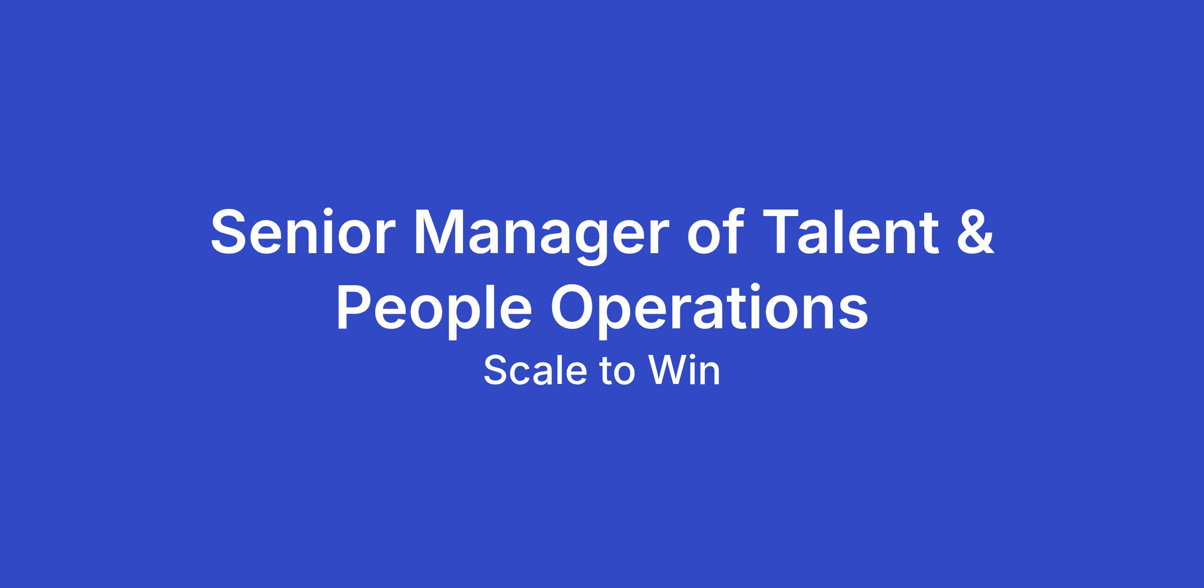 Scale to Win is hiring a Senior Manager of Talent & People Operations to lead and scale equitable, efficient hiring systems while ensuring strong people operations practices that support staff success and organizational effectiveness.