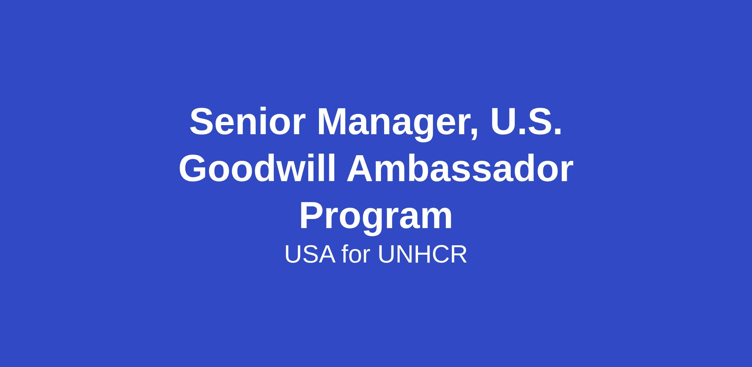 - Serve as USA for UNHCR’s primary liaison and subject matter lead to UNHCR’s global Goodwill Ambassador Programme; collaborate with UNHCR global and U.S. focal points to ensure consistent application of GWA guidelines and best practices.