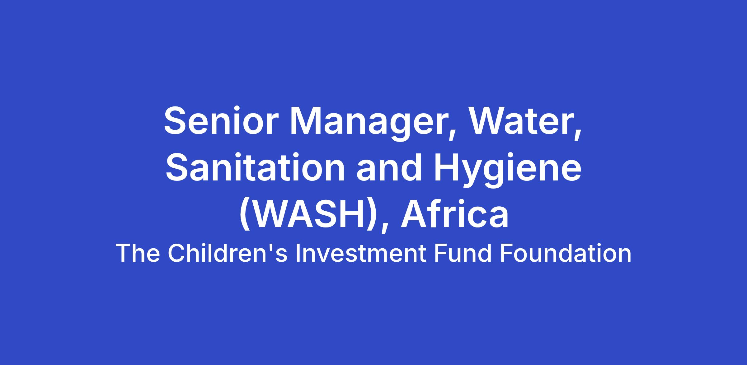 - Provide senior technical and strategic leadership for CIFF’s WASH investments in Ethiopia, ensuring alignment with CIFF’s Africa WASH strategy and broader child-centred outcomes.