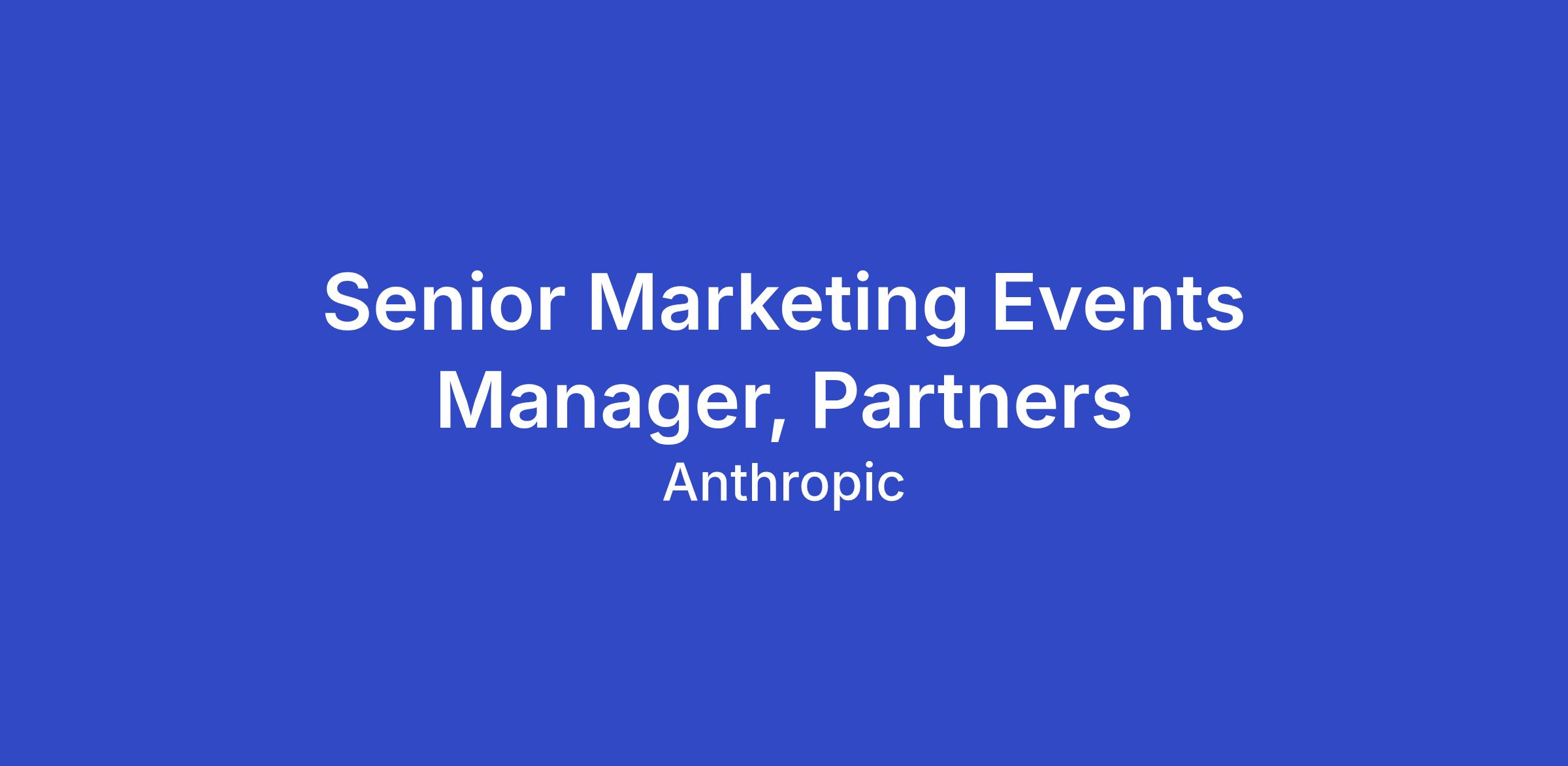 Anthropic is looking for a Senior Marketing Events Manager to run our Partner events. In this role, you will own the development and execution of Anthropic's presence at partner conferences, industry events, and sponsored activations. You'll be responsible for ensuring that every event touchpoint—from booth design to on-site experience to post-event follow-up—reinforces Anthropic's brand and drives meaningful engagement with our partners, customers, and the broader AI community.