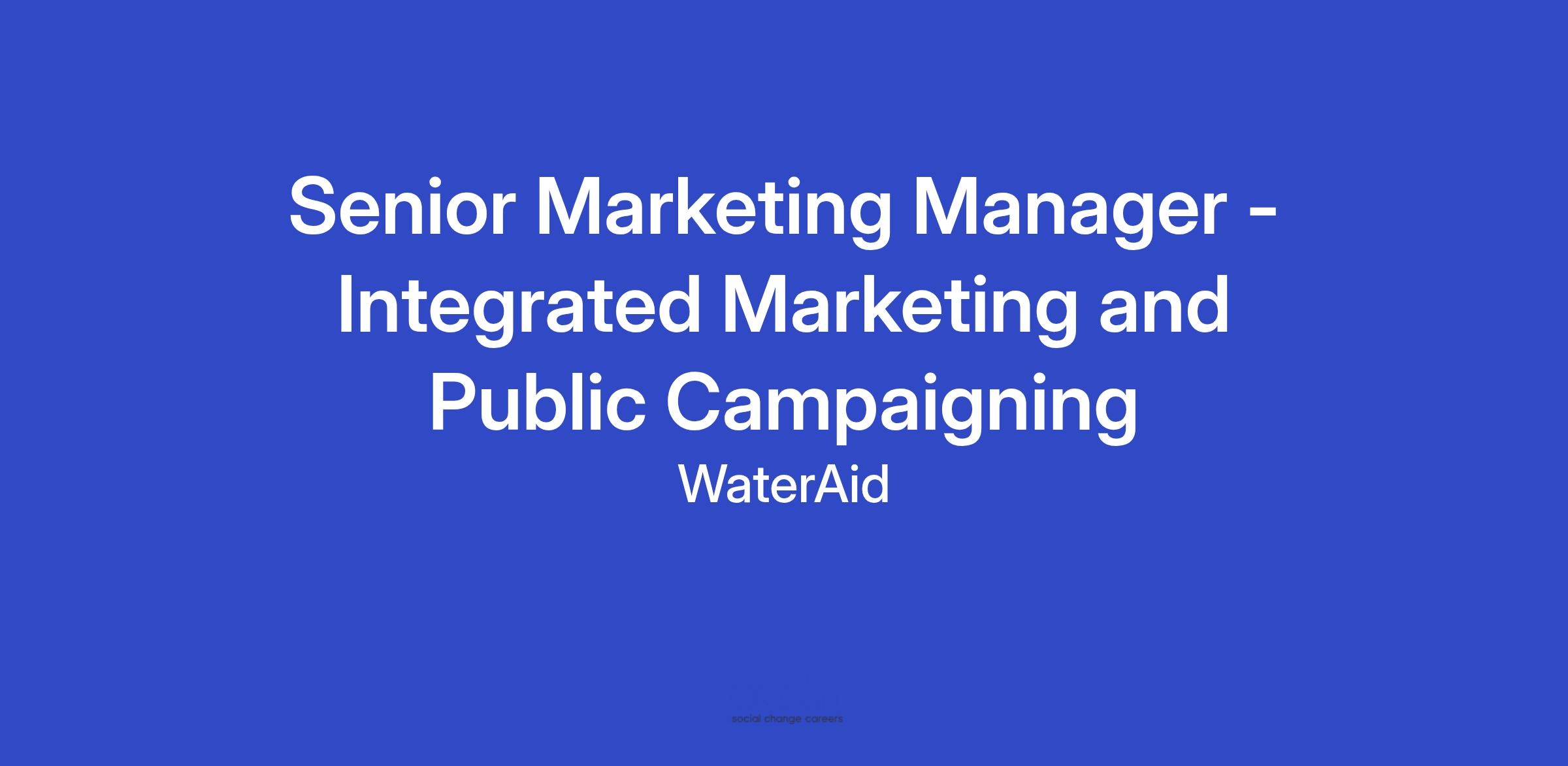 To lead the strategic development and delivery of WaterAid's public fundraising integrated campaigns and high-impact mass public campaigning activations. As a key strategic leader, this role is responsible for driving marketing activities that effectively build the WaterAid brand, generate vital income, and mobilise public support for our mission.