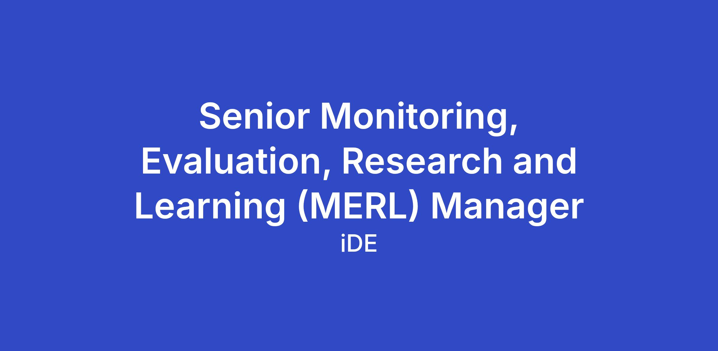 Position Title: Senior Monitoring, Evaluation, Research and Learning (MERL) Manager