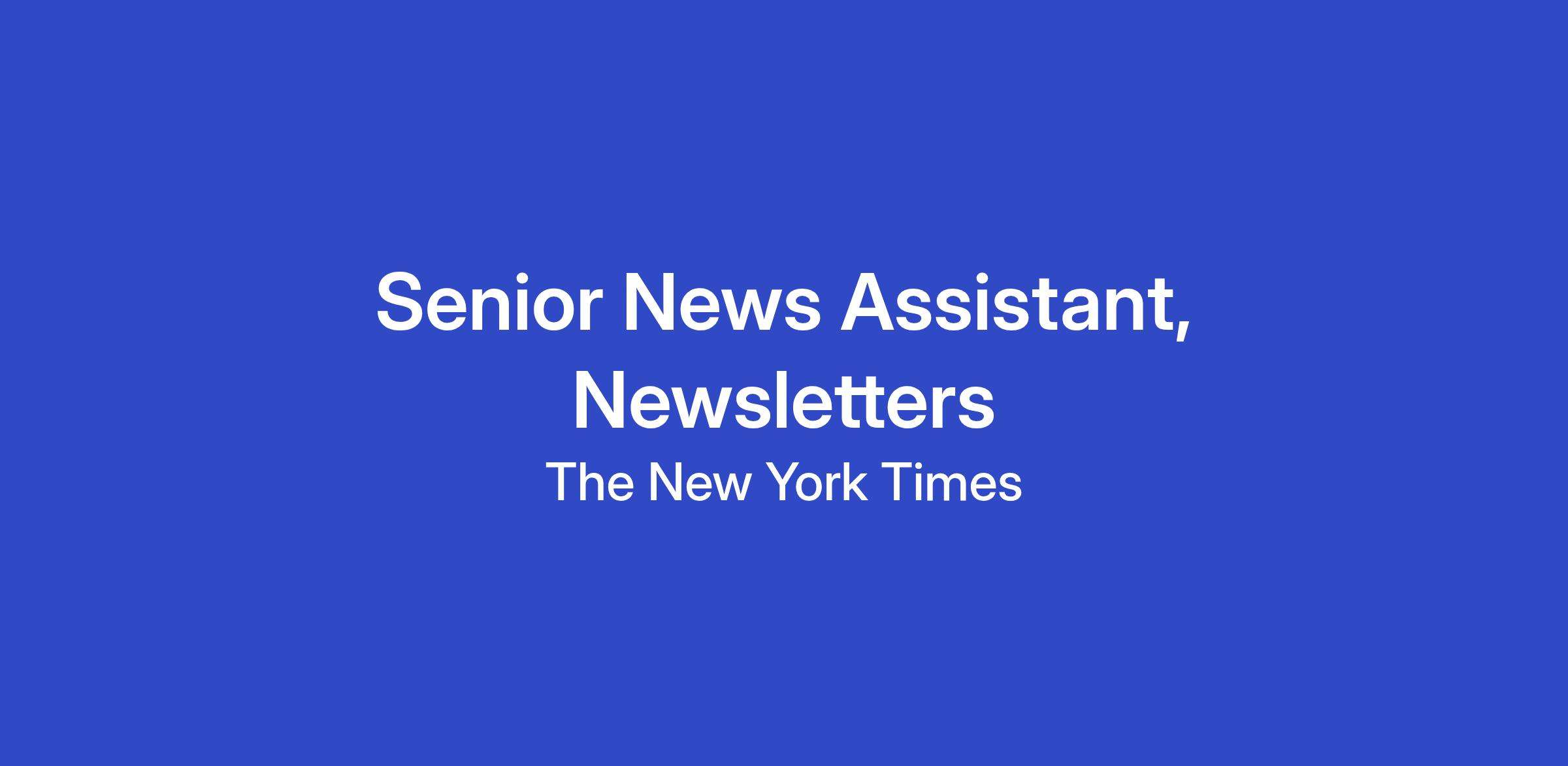 The New York Times Newsroom Operations team is looking for a news assistant to work on our Newsletters desk in a support role with varied tasks and responsibilities. You will be an engaged and collegial team member with an interest in news who is able to support reporters and editors across a range of logistical and operational responsibilities. Organization, flexibility and a desire to learn new skills are critical to success in this role.