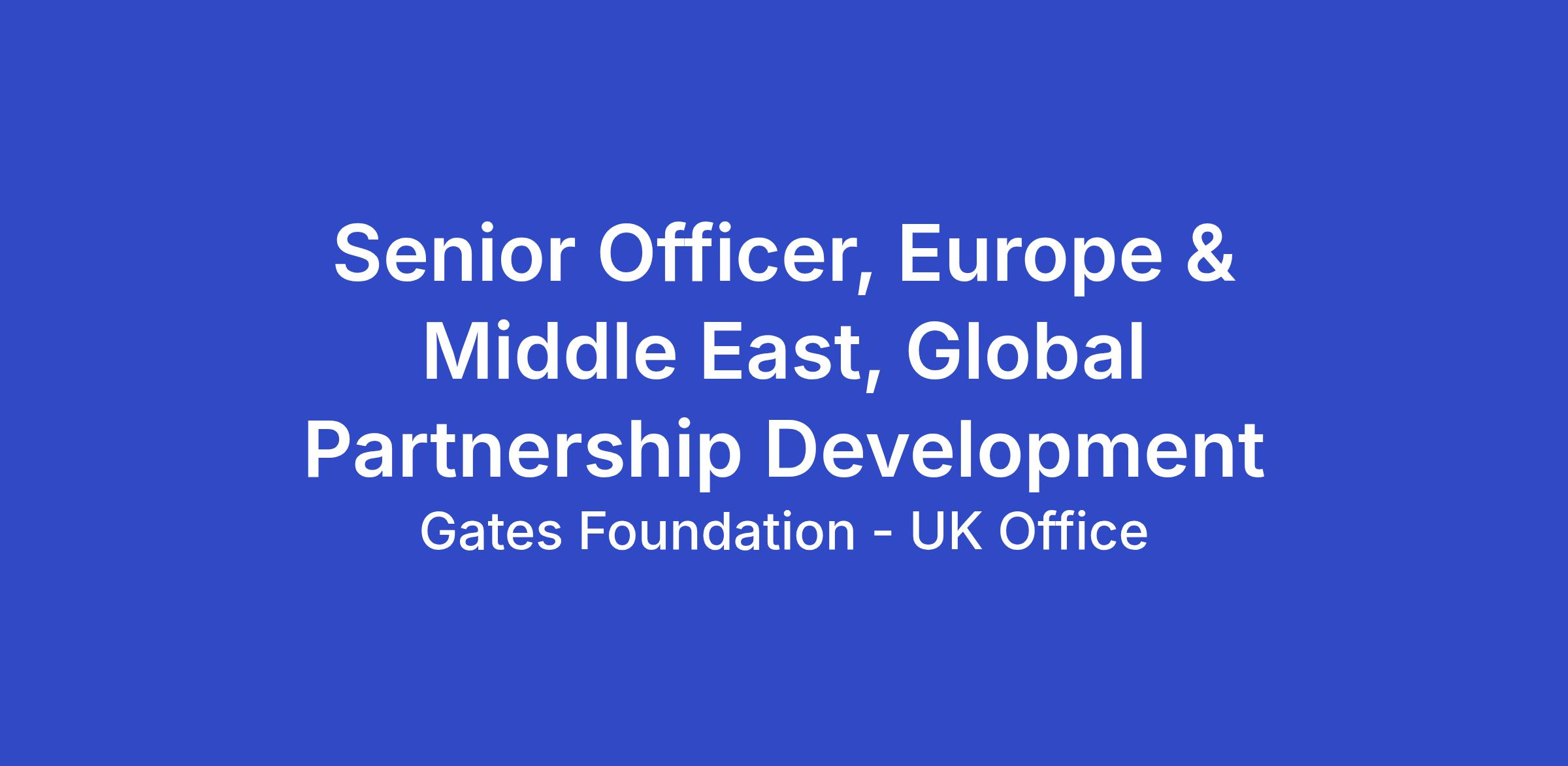 The Senior Officer, Europe and Middle East, Global Partnership Development leads the strategic cultivation and stewardship of high-value partnerships with Europe and Middle East-based philanthropists, ultra-high-net-worth individuals (UHNWIs), and family offices. Priority countries within these geographies include the United Arab Emirates, Saudi Arabia, United Kingdom, and Germany, with additional exploration into the Nordic countries. You will coordinate across a sophisticated team of relationship leads where you may play a leading, support, or advisory role in specific partnerships based on existing partnerships.