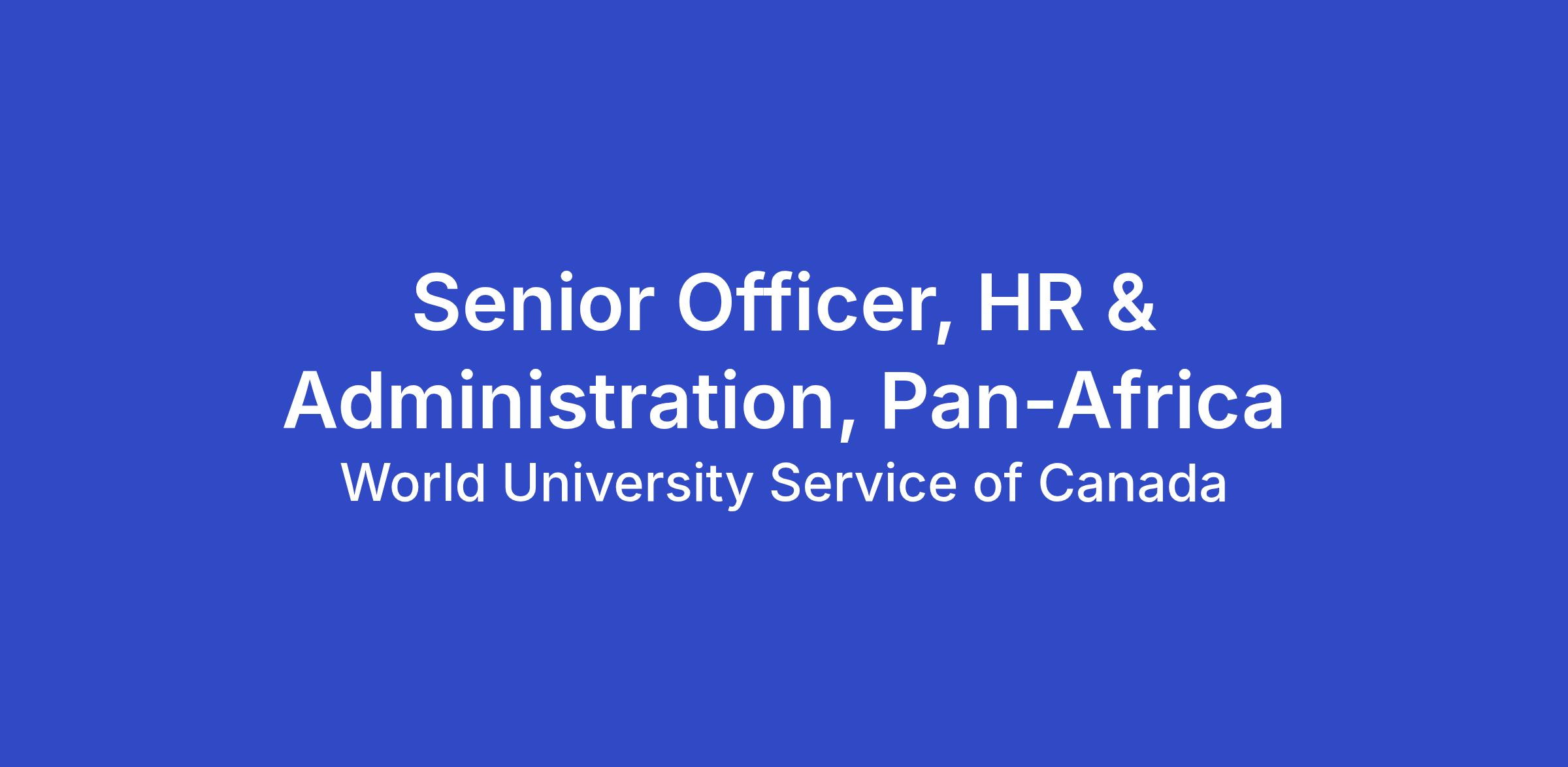 Senior Regional Officer, HR & Administration, Pan-Africa,