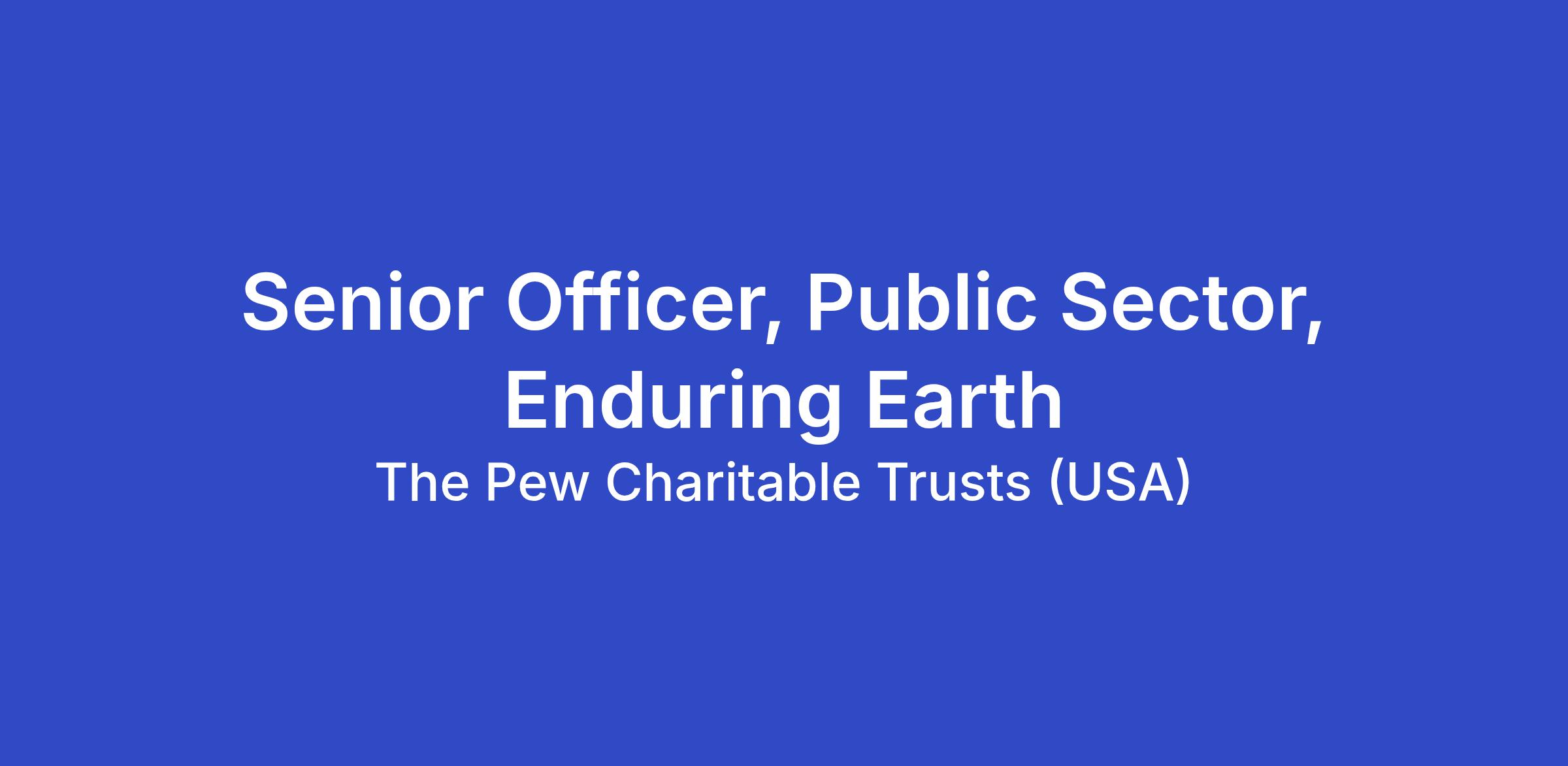 The Enduring Earth partnership aims to complete 20 PFPs by 2030. Pew is currently co-leading four PFPs and is seeking a Senior Officer, Public Sector to support the PFP portfolio and provide direct support to PFPs.