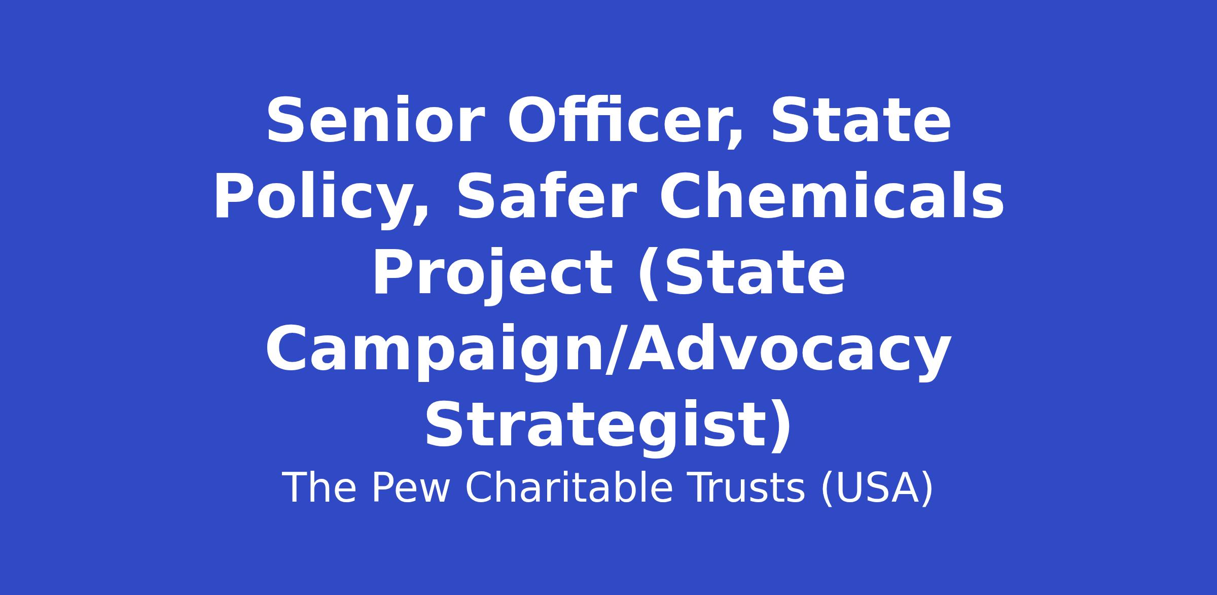 The Senior Officer, State Policy, Safer Chemicals Project, helps to advance the project’s efforts to reduce Americans’ exposure to endocrine disrupting chemicals through state action, such as the adoption and effective implementation of state policies.
