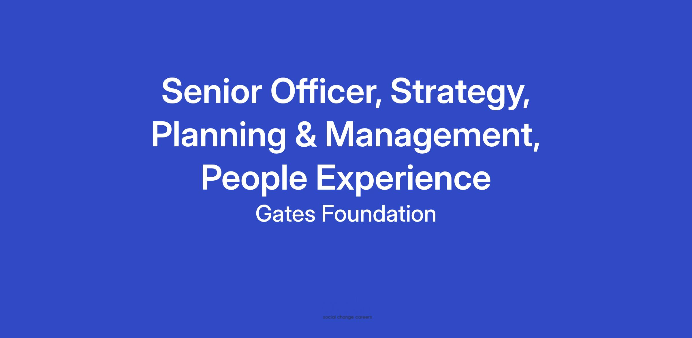 As the Sr Officer, Strategy, Planning and Management you will facilitate the strategic, financial, and operational functions that enable the People Experience team to deliver on foundation-wide solutions. You will work across the foundation and with initiative areas that span the employee lifecycle including total rewards, mobility, workforce planning, onboarding, capability development, performance management, offboarding, and alumni programs. In this role, you will bring strategic and operational insight that complements the team’s technical expertise to guide program strategy, planning, and execution. As the foundation accelerates its impact toward its planned closure in 2045, the team plays a key role in addressing unique global talent challenges during this period of transformation.