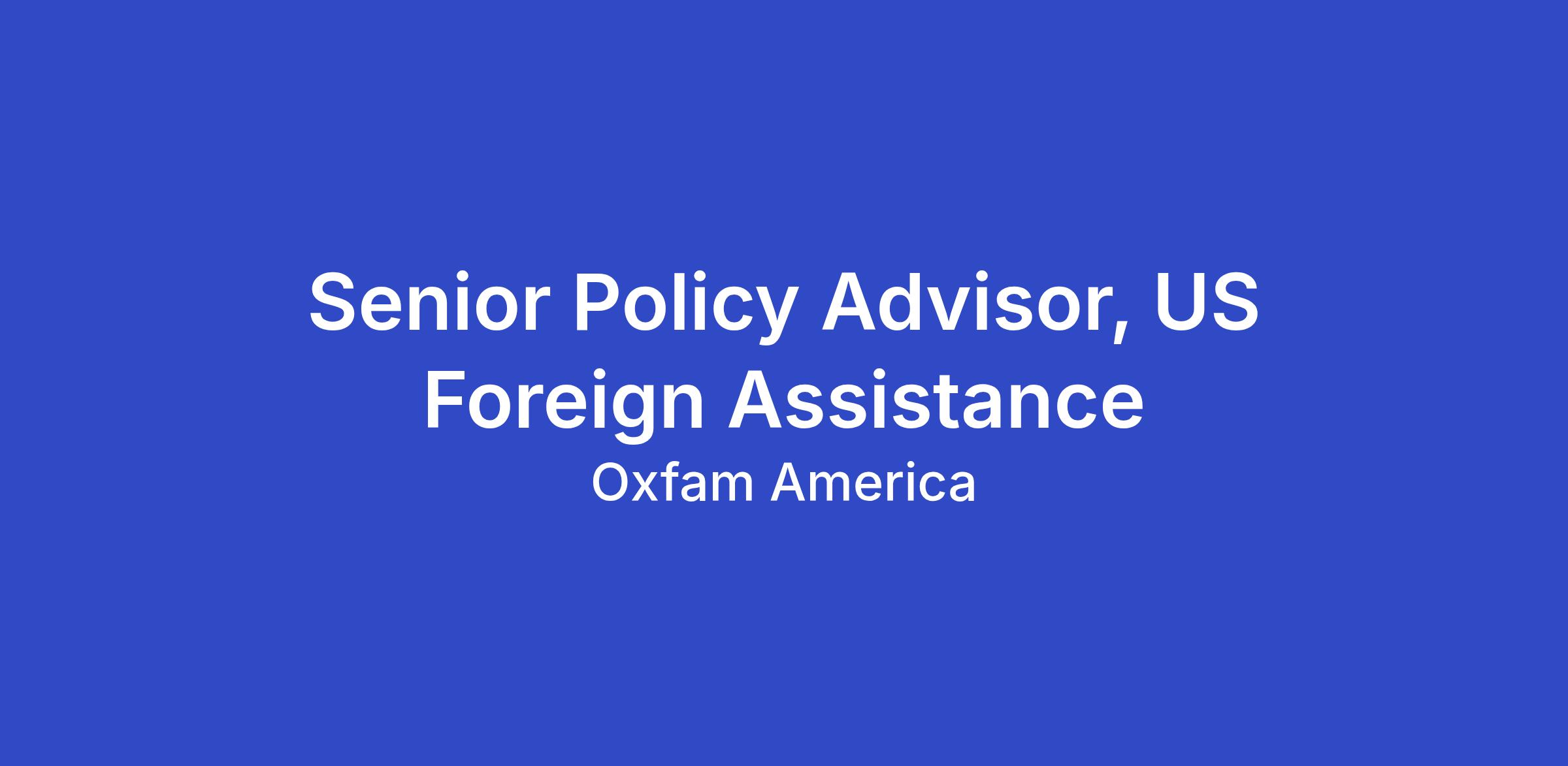 The Senior Policy Advisor, US Foreign Assistance will support Oxfam’s longstanding work engaging the United States government on the need to strengthen and shift its approach to foreign assistance and use the current aid landscape to present a new vision for US foreign assistance that confronts power asymmetries and inequality, advances justice, and helps to better define the US role in the world through doing so. Oxfam US (OUS) already possesses a strong focus and capacity on humanitarian assistance, reform, and system transformation; this position will help Oxfam expand its focus beyond humanitarian and develop its vision for the future of US foreign assistance, centering economic justice and rights in dignity and crisis. It would engage the need for change premised on the significant developments of the last year and longstanding critiques of foreign assistance, alongside other leading organizations in this space.