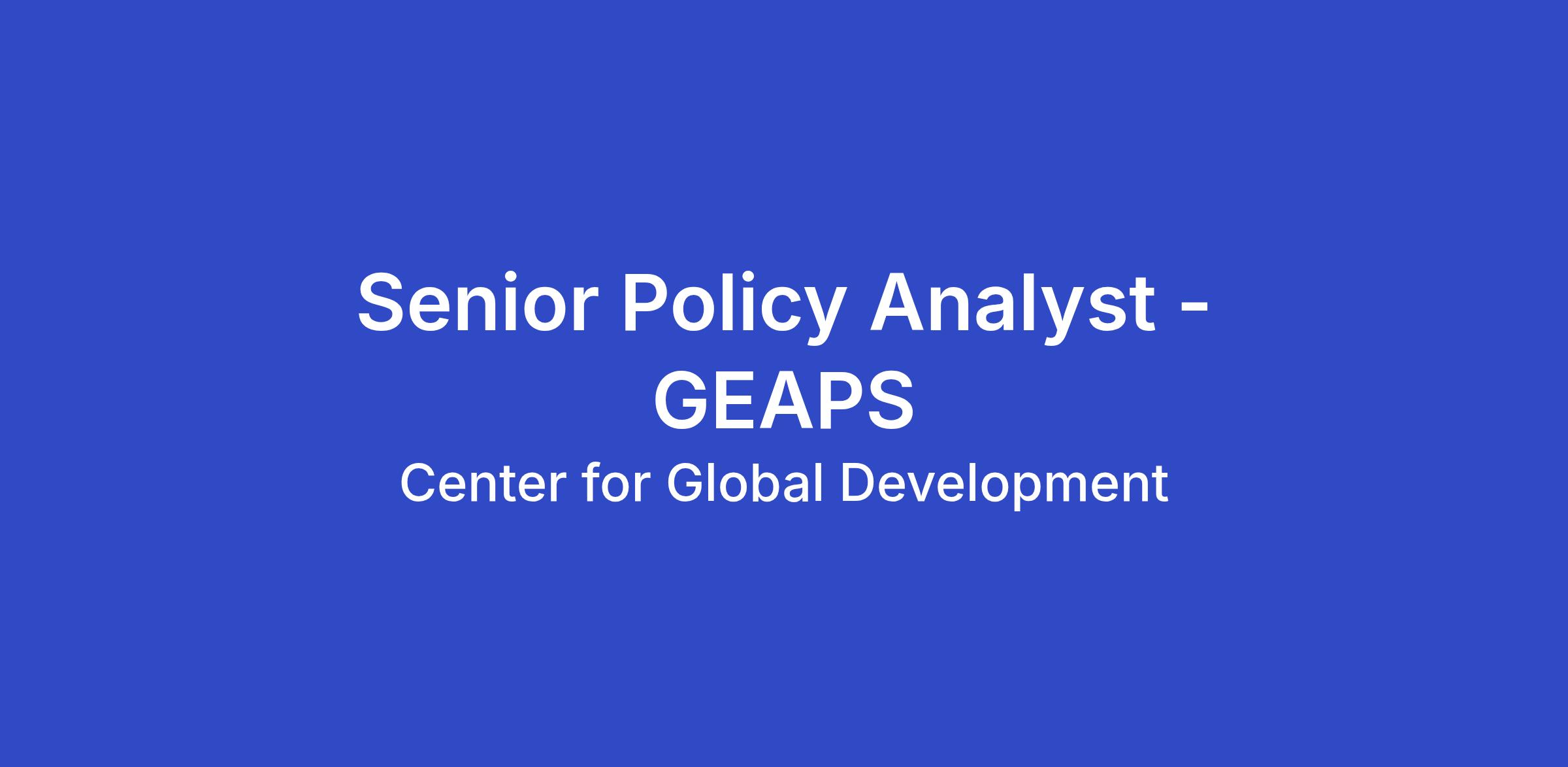 The Global Evidence Advisory Panel on Skills (GEAPS) is a two-year initiative that will produce a systematic review of evidence on workforce skills development in low- and middle-income countries (LMICs), culminating in a flagship report, policy briefs, and related knowledge products. The GEAPS Secretariat — co-led by CGD and the World Bank — is responsible for research, Expert Panel and Steering Committee coordination, dissemination, and administration. The Senior Policy Analyst will work closely with Markus Goldstein (VP and Senior Fellow, CGD) to ensure GEAPS delivers high-quality, policy-relevant outputs on time and to standard.