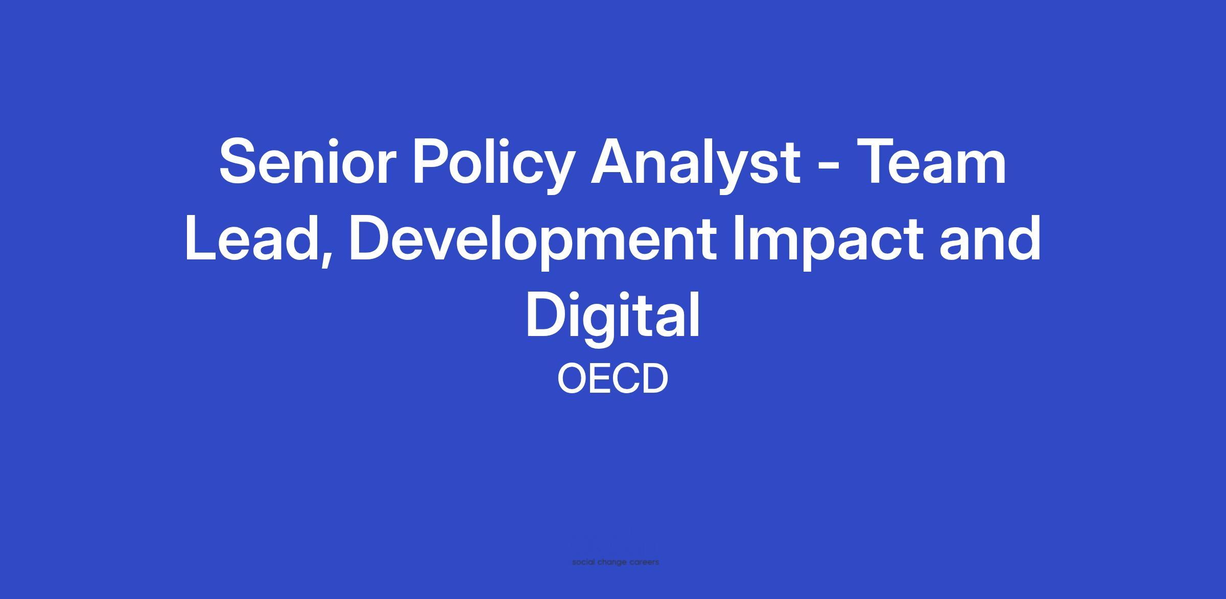 DCD is looking for a Senior Policy Analyst / Team Lead for Development Impact and Digital. This is a new role, overseeing several existing and emerging initiatives within RPDI with an emphasis on partnering with Member and non-Member development co-operation agencies to improve their impact. The position includes oversight of activities related to system-wide reforms, including: on-demand support to governments in strengthening their institutions, policies and processes to maximise development impact; work on and with emerging donors;; and new initiatives to support development co-operation agencies in the area of digital technologies (e.g. investment in digital public infrastructure; developing a new workstream on Artificial Intelligence (AI) for effective development co-operation).