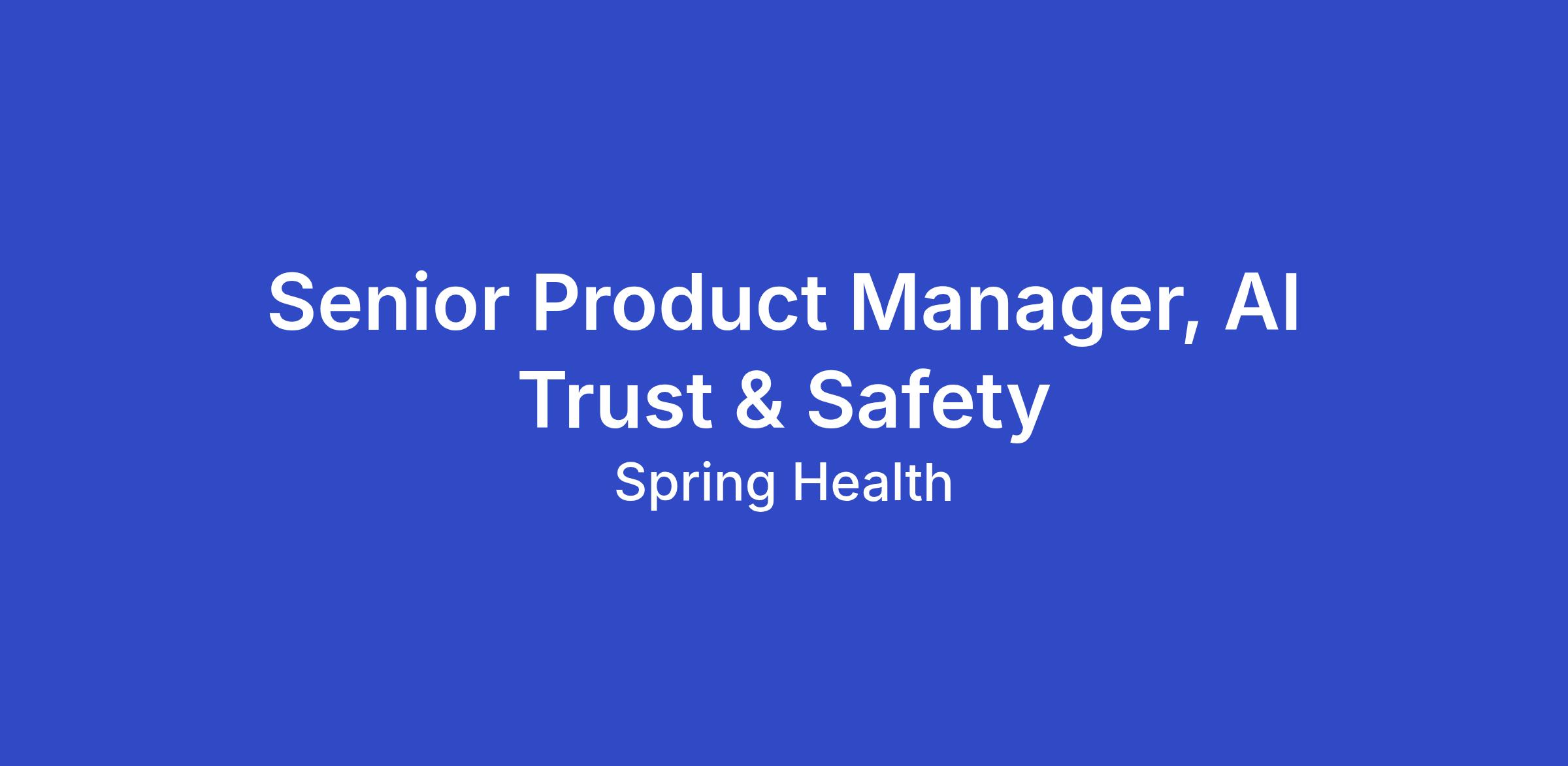 The Senior Product Manager for AI Trust & Safety will own the roadmap and champion the standards to ensure AI experiences in Spring Health’s products are safe and trustworthy. You will shape the definition of 'safe and effective' AI by leading efforts in model evaluation, operational approval gates, and safety measurement, collaborating with engineering, data science, legal, and clinical stakeholders to implement this strategy. Reporting to the Senior Director of Product, Customer Value, this hybrid role is based at our New York City office (60 Madison Avenue), with 2-3 days per week in-office required.