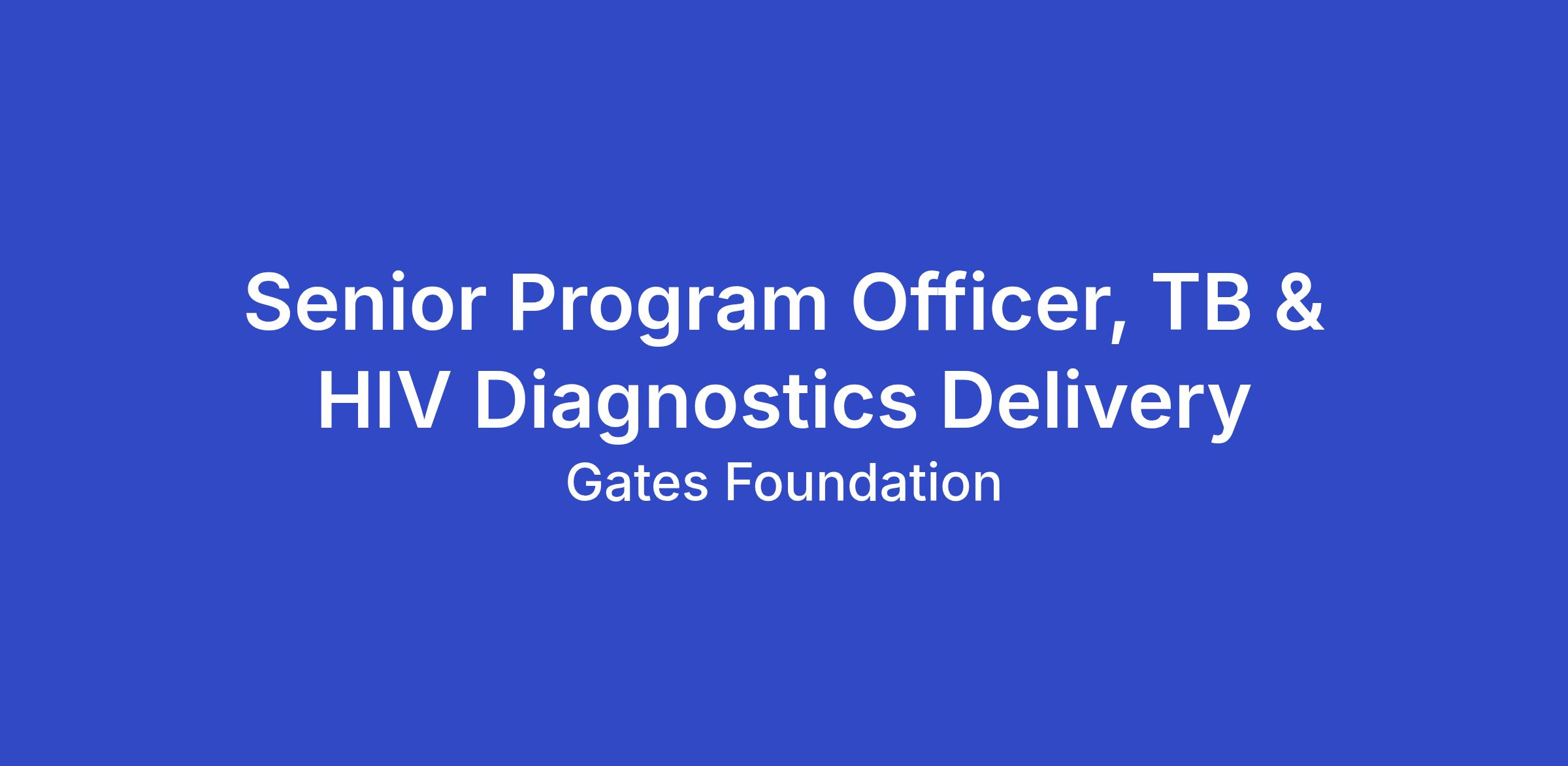 - Extensive experience with diagnostics delivery or implementation, ideally in TB or HIV programs in LMICs.