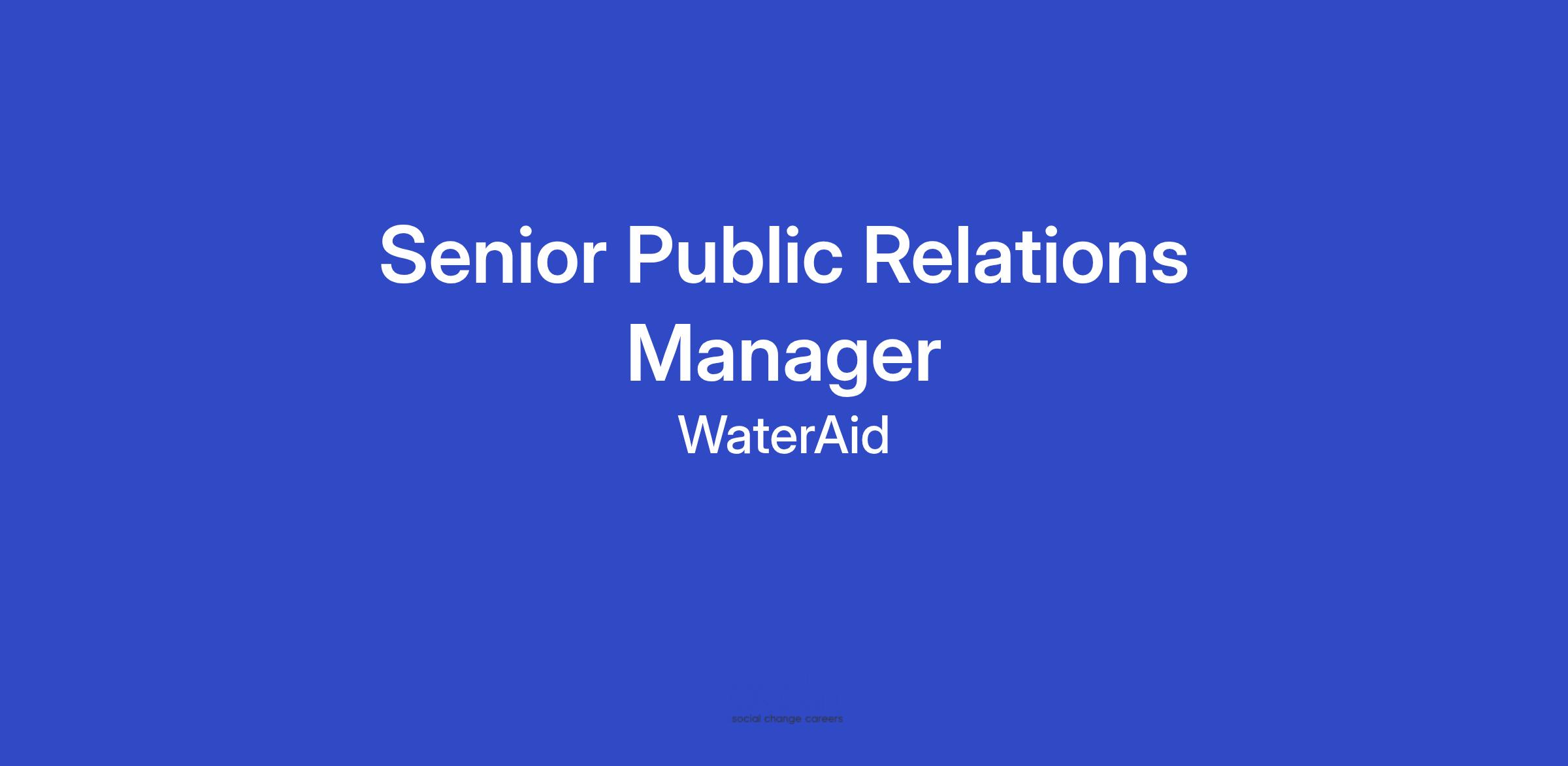 As our Senior PR Manager, you will lead the public relations function for WaterAid and work closely with the three senior media officers you manage, to drive sustainable change.