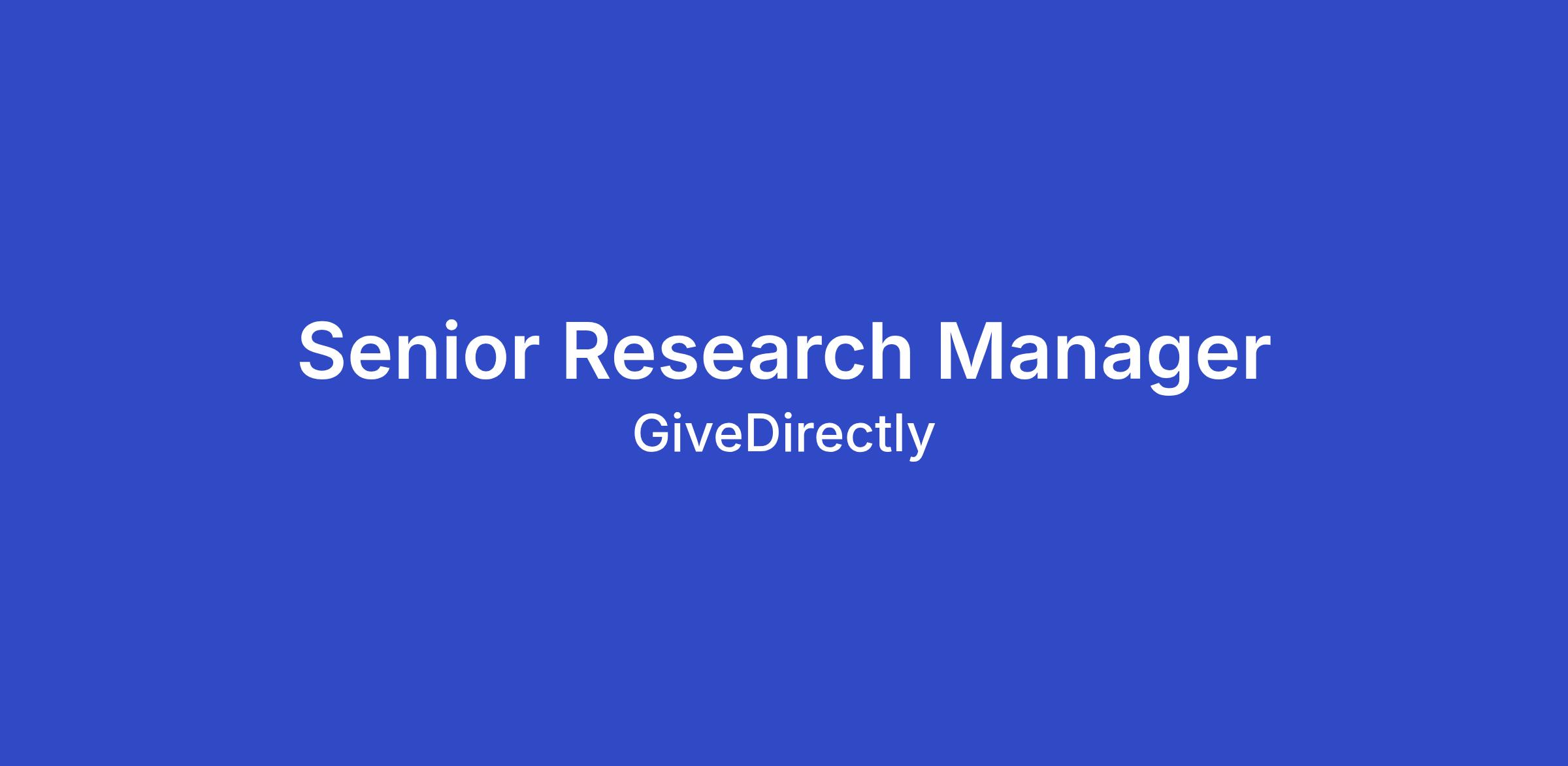 This Senior Research Manager will own GiveDirectly’s impact learning agenda for our core Large Lump Sum (LLS) programming, in close collaboration with relevant Product Leads and M&E staff. They will own the development and advancement of our organizational learning for Large Lump Sum transfer programs, including: