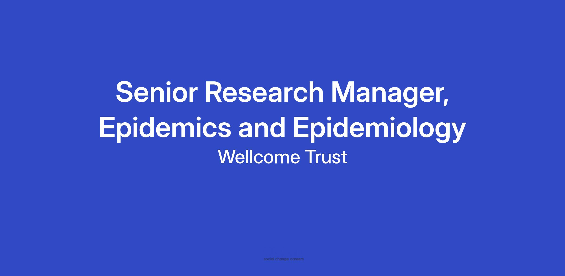 We are looking for an Epidemics & Epidemiology Senior Research Manager to shape and develop the epidemiology areas of work for infectious disease within Wellcome, with an initial focus on Antimicrobial Resistance (AMR), delivering impact for patients and communities in the geographies most affected by drug resistant infectious diseases.