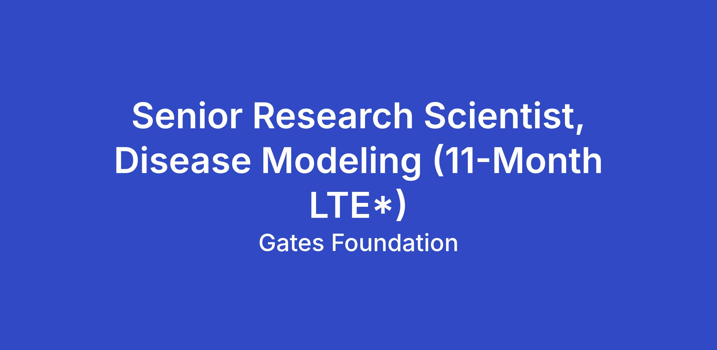 Senior Research Scientist, Disease Modeling (11-Month LTE*)