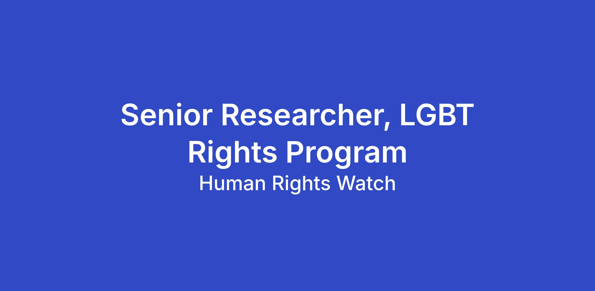 The LGBT Rights Program of Human Rights Watch (HRW) is seeking a Senior Researcher who will focus on advancing human rights related to sexual orientation, gender identity and expression, and sex characteristics (SOGIESC) in the SWANA (Southwest Asia and North Africa) region. The LGBT Rights Program works to advance human rights for lesbian, gay, bisexual, transgender, queer and intersex (LGBTQI) people globally and conducts a wide range of work, including investigation, report writing, advocacy and media work.