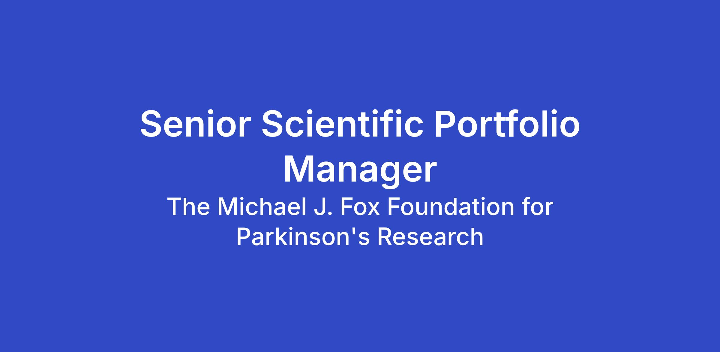 The Michael J. Fox Foundation for Parkinson's Research ("the Foundation") is seeking top talent for its Senior Scientific Portfolio Manager position. Reporting to the Director of Translational Biomarkers, this position develops a scientific strategy for biomarker-focused portfolios spanning discovery, validation, and clinical implementation.