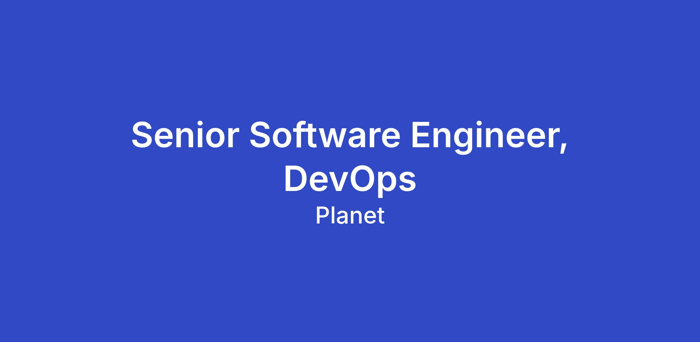 The Global Monitoring Service (GMS) App Team is hiring for a Senior Software Engineer to ensure fast, secure, and reliable releases through the team’s DevOps capabilities. The GMS App Team is responsible for providing a customized application for Defense & Intelligence customers from around the world. This application provides daily, near-real time monitoring and analytic insights on customer-defined sites built atop Planet’s satellite data.